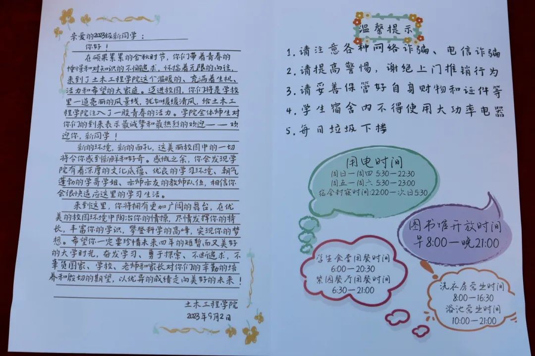 土木工程学院2023级的萌新们在学院迎新接待处留下了珍贵的入学纪念。