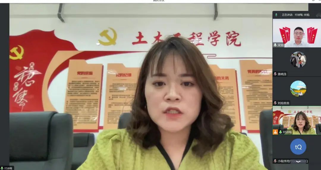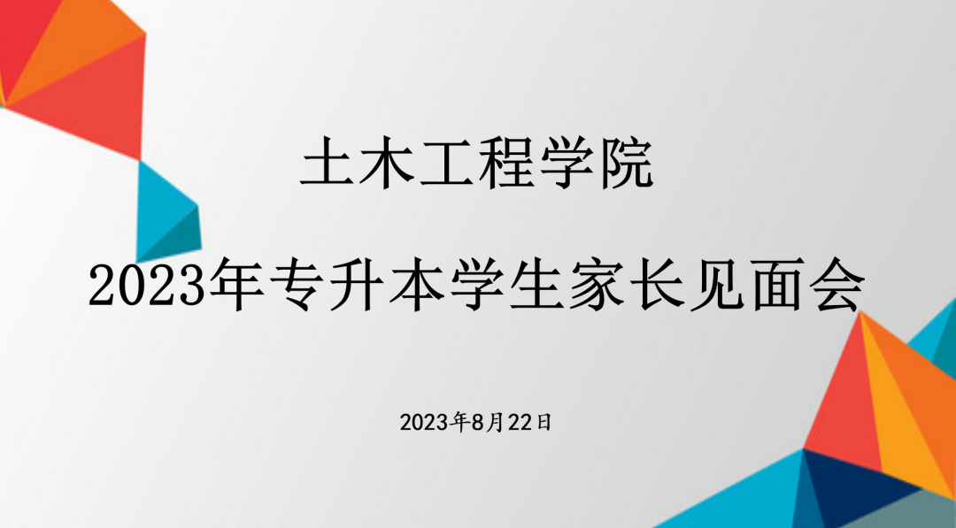 为让2023年专升本学生家长全面了解学院总体情况,促进家校合力育人,加强家校合作力度,2023年8月22日下午,土木工程学院2023年专升本新生线上家长会。本次会议由学院党总支书记宋旭主持,院长盖晓连、副院长张佰真铭、院长助理荆明野、土木工程系主任姜涛、建筑环境工程系主任赵婧瑜、辅导员付诗瑶以及全体专升本同学家长参加会议。