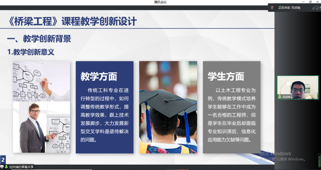 此次比赛以教学设计创新汇报的形式开展,各参赛教师按照赛前公布的顺序在规定的时间内汇报。每位参赛教师都做了充足的准备,从所授课程的“痛点”出发,力求通过有效的教学创新设计,帮助解决实际教学难题。