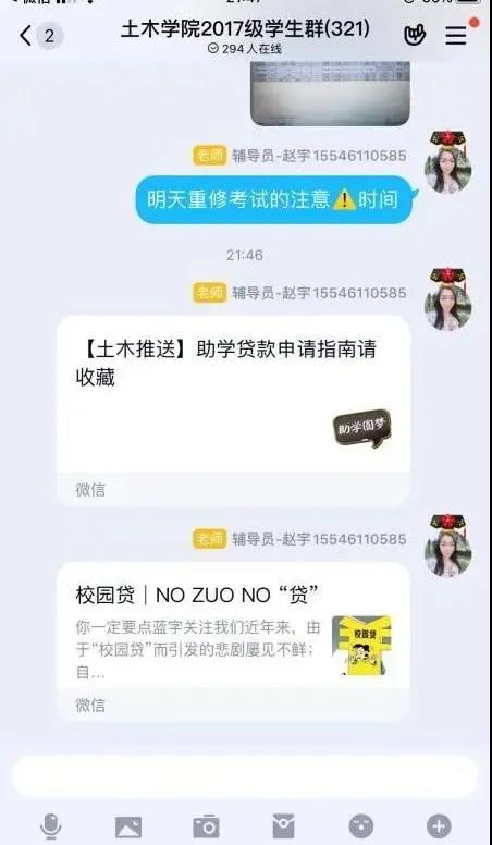 同时,学院通过微信平台、钉钉和qq群等网上平台向同学们宣传国家助学贷款申请流程和校园网贷危害等知识,帮助和督促学生了解和掌握征信知识,了解诈骗、不良贷和套路贷的恶劣手段。