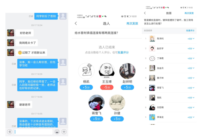 在课程的学习途中,我会不定时的通过超星学习通采用选人答题的方法随机抽取几个学生进行答题,了解学生在线的学习情况,保证学生的听课率。选人回答以及抢答、讨论等互动环节我会采用加分、扣分的方式鼓励同学积极参与。