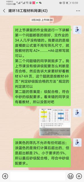 在完成课堂的授课任务之余,答疑也是必不可少的环节。我采用的答疑方式是在微信群内答疑,或者同学私信,我会针对问题给出相应的帮助。对于作业中错误率较高的题我会在微信群中文字留言统一讲解,一些计算题就用录屏进行讲解,然后发到微信群中供大家随时查阅,课后作业也会在微信群中提醒大家及时提交。