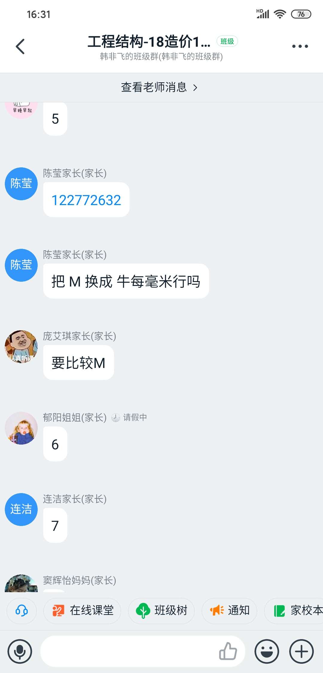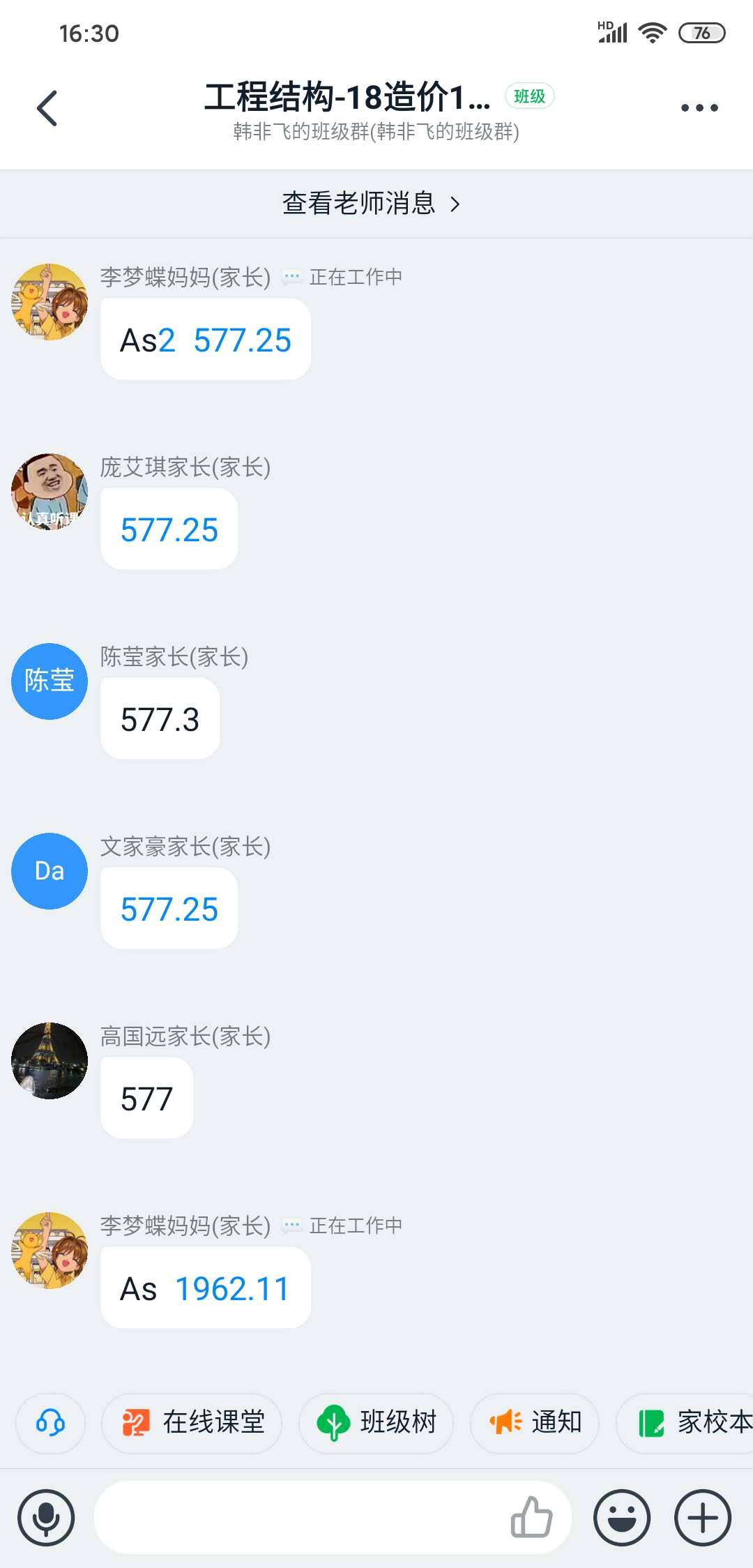 2.在授课的过程中随时关注学生的反应。不定时进行随机提问,督促学生听课,通过学生的反馈及时调整教学速度和内容,对于回答准确和积极的同学采用加分鼓励。学生也可以使用语音随时提出疑问。也可以在钉钉群里与学生互动,学生可以在群里发表自己的计算结果和反馈的信息。