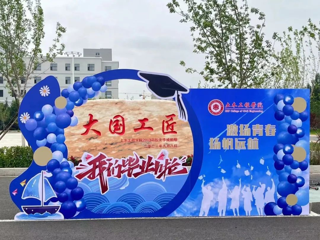 四年时光,毕业学子们更加成熟和自信。为了让即将离开校园的毕业生们留下美好的回忆,土木工程学院于综合实训馆前展出两个行架为毕业生拍照打卡使用。