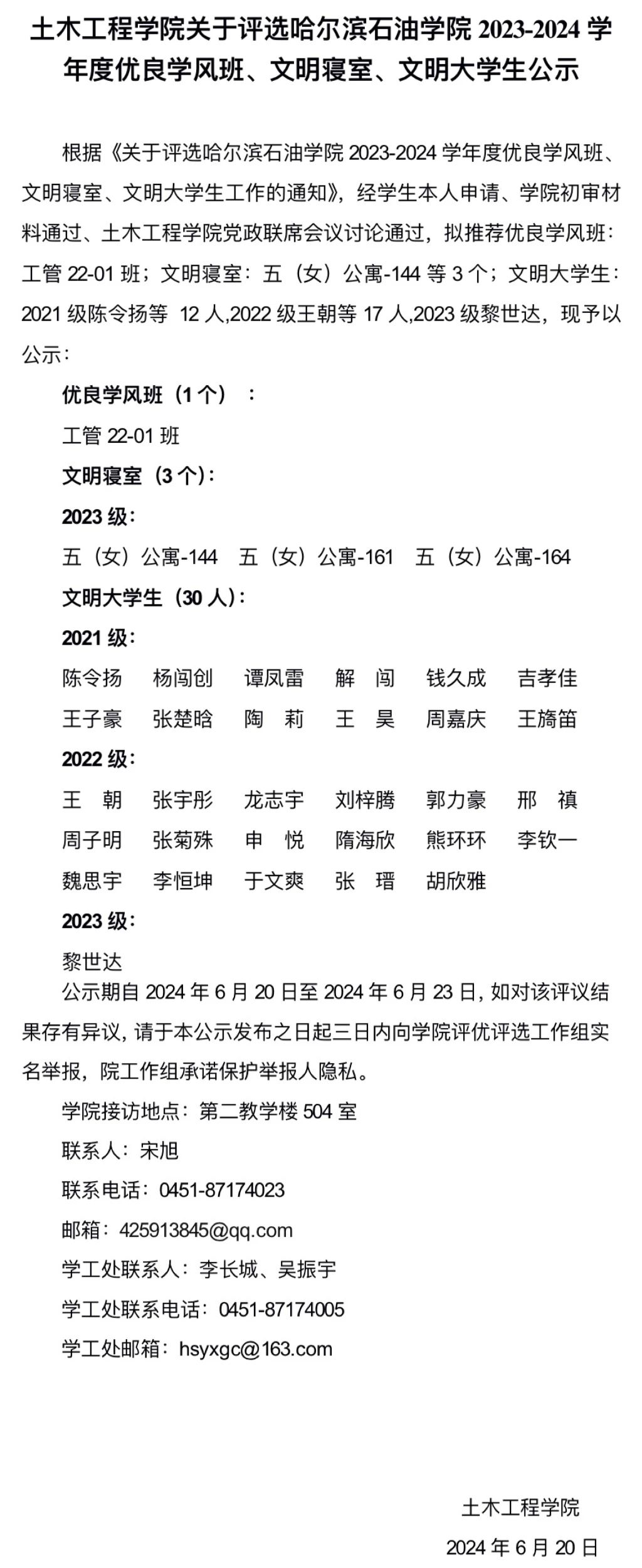 我院关于评选伟德bv国际体育2023-2024学年度优良学风班、文明寝室、文明大学生公示