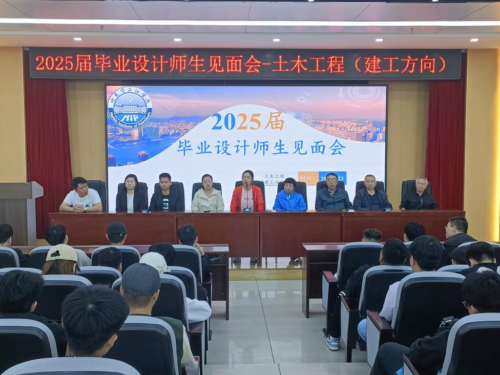 毕业论文设计是体现理论与实践相结合的重要教学环节,是对学生运用所学知识解决本专业实际问题能力的综合训练,也是反映专业教学质量的重要标志。为确保毕业设计工作高质量开展,毕业设计相关工作有效地落实,土木工程专业(建工方向)于2024年5月23日在主教518会议室顺利召开了2025届毕业设计师生见面会,土木工程专业(建工方向)毕业设计全体指导教师、全体学生均参与本次会议,尤其是来自黑龙江科技大学的齐伟军教授、赵艳秋教授、李国柱教授及冷冬冰教授特别受邀出席本次会议。
