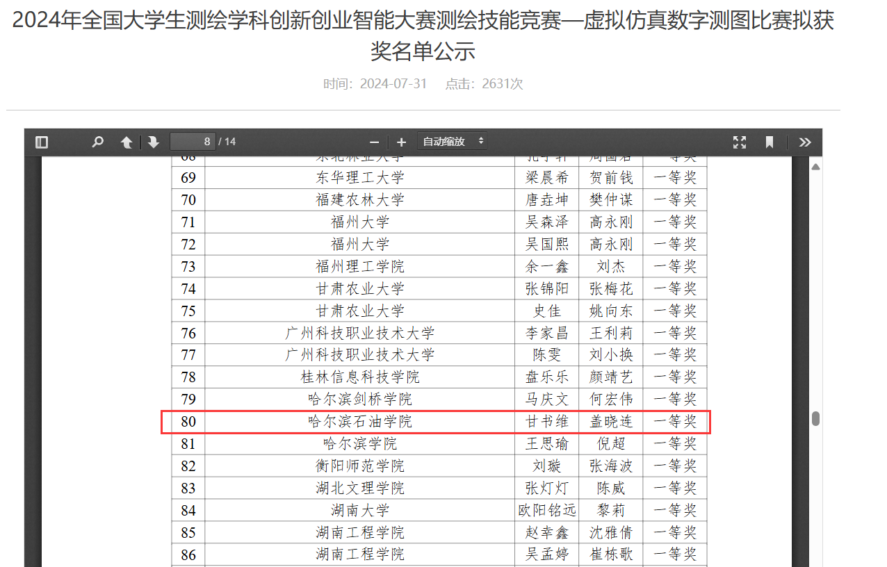 本次大赛是在虚拟场景进行比赛,采用先进的虚拟现实技术,为参赛队伍构建了一个高度仿真的测绘环境。参赛者需在电脑端操作,面对复杂的虚拟地形,运用所学知识和技能,进行精确测量与高效绘图。这一赛项不仅考验了学生们对测绘技术的掌握程度,还锻炼了他们在虚拟环境中的应变能力和创新思维。我院选择多名优秀的学生,在指导老师的悉心指导下,经过数月的紧张筹备与刻苦训练,最终在数字测图赛项中获得全国一等奖。