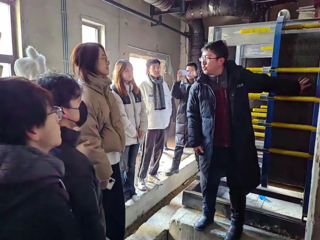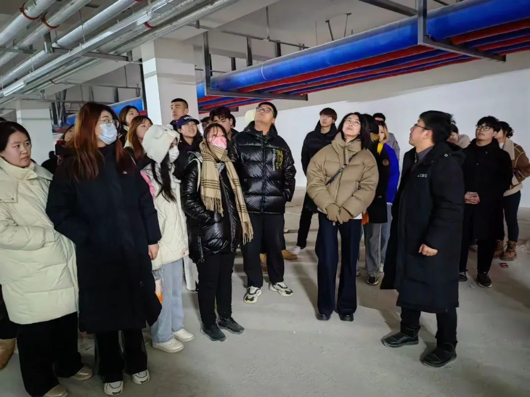 第二天来到肇东旅游康养城,参观了换热站及地下车库,企业技术人员详细讲解了换热站设备及车库中的防排烟、消防系统及供热消防管道敷设布置,使学生了解现在常用供热形式,初步理解节能在建筑中的重要性。