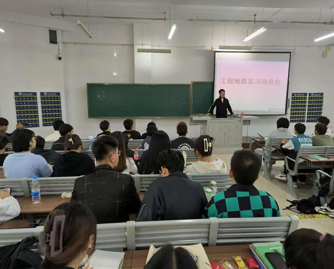 实习第一天,孙强老师召开了工程地质实习动员大会,指导教师王宇琦参加会议,会上,孙强老师就实习的具体安排、实习操作规范及报告的撰写进行了具体说明。并着重强调了校外实习的安全注意事项。