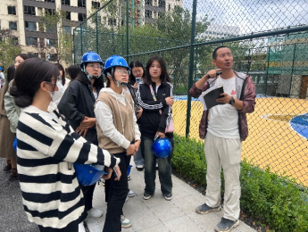 第四天,到绿地黄浦公馆五期项目进行参观实习。现场的讲解员从不同角度进行了工程建设的流程介绍,也对精装修住宅的装修标准进行了讲解,同学们都认真聆听,收获很多。