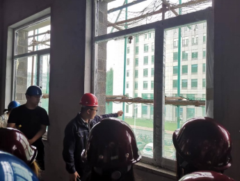 第一天,上午两位指导老师首先进行了认识实习动员,会上就认识实习目的、意义、主要安排以及安全事项进行了详细讲解。动员会结束后,带领22级工程管理80名学生在校院内进行参观,利用校内现有建筑,讲解了关于建筑结构形式、外立面装饰、门窗工程等内容,让学生对建筑工程有初步的认识。