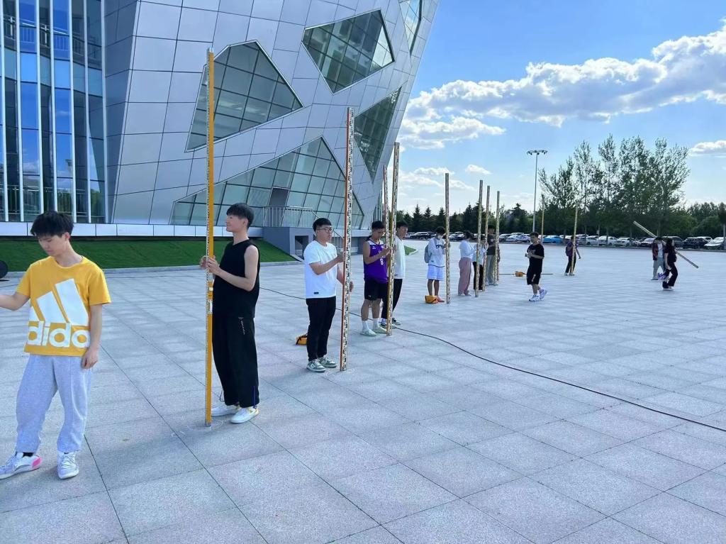 比赛开始后,各参赛小组成员立即投入紧张的比赛氛围中。各组参赛的同学分工明确,负责观测的同学认真观测、读数,记录员认真记录数据,扶尺同学时刻保证双面尺处于竖直状态,每一位同学相互配合,团结协作。