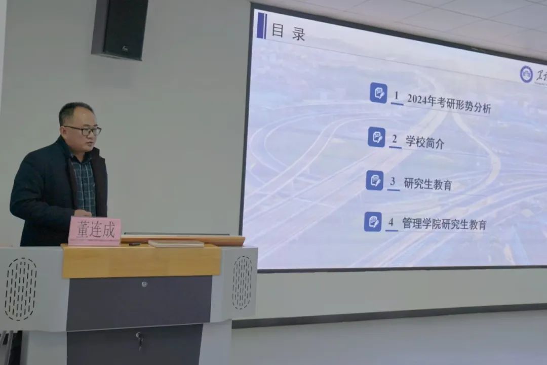 董连成教授分别从目前的考研形势、学校简介及研究生教育三方面进行了深入浅出的讲解,并鼓励同学们根据自身情况制定个性化的备考计划,注重基础知识的巩固与拓展,同时保持良好的心态和健康的体魄。同时,他以该校的特色专业为出发点,深入剖析了考研对于个人成长与职业发展的重要意义。他指出,科学合理的备考规划是考研成功的基石,希望同学们能够明确目标、找准方向,以更加饱满的热情和坚定的信心迎接挑战。