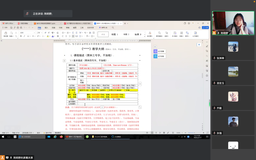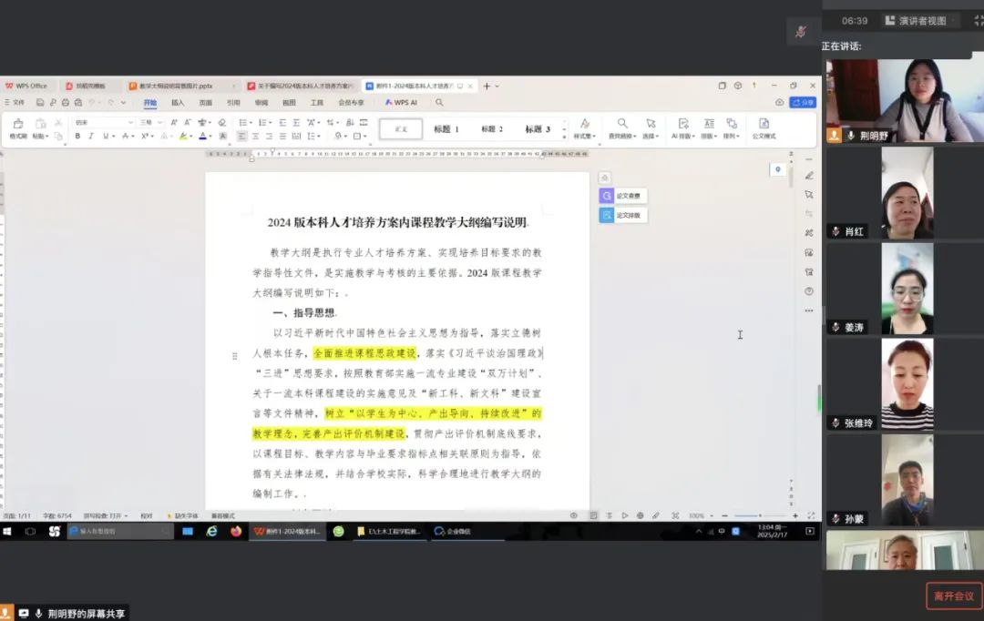 为进一步深化教育教学改革,提升本科教学质量,人居环境学院于 2025年2月17日召开线上本科人才培养方案教学大纲编写质量推进会。学院负责人、主任教授、全体专任教师齐聚一堂,共同为教学大纲编写出谋划策。