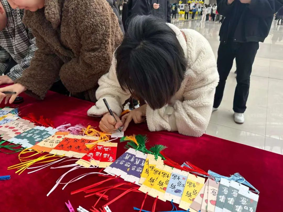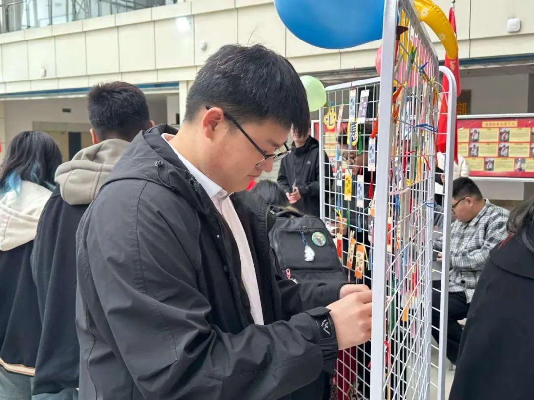 活动期间,学院在主教阳光大厅设置了心愿墙,参与活动的学生在学院提供的心愿贴上,用彩笔、图章等工具留下自己美好的愿望,并将心愿贴贴在心愿墙上。