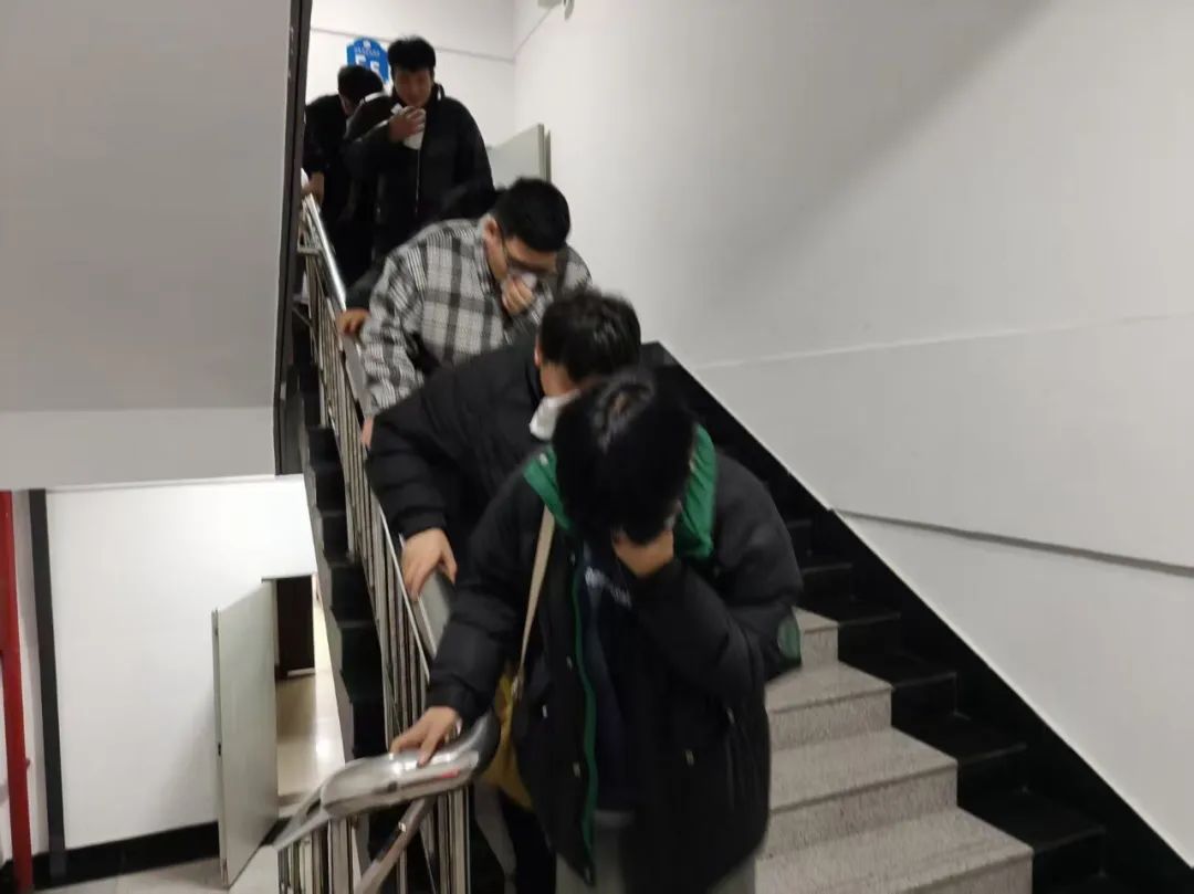 随后,学院组织进行了消防应急疏散演练。同学们迅速按照预定的疏散路线,低头、弯腰、捂住口鼻,有序地撤离到安全地带。演练过程中,各年级辅导员和安保人员密切配合,确保演练顺利进行。