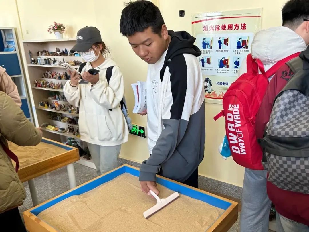 在中心专业教师王威老师的带领下,同学们依次体验了情绪宣泄室、音乐放松室、沙盘游戏室、团体辅导室等功能区。看着形式多样的先进专业设备,倾听经验丰富的专业心理健康老师的讲解,调动了同学们参与心理健康活动的积极性,同时为提高我院学生的心理健康基础提供了有效保障。通过参观活动,同学们既感受到了心理健康活动中心的专业水平,又舒缓了自己的内在压力。
