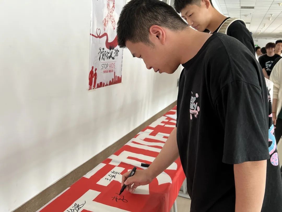 本次活动通过宣传展板、海报等形式向同学们宣传禁毒防艾知识为主,引导同学们重视毒品危害,预防艾滋病毒,增强自身远离毒品、拒绝毒品、防范艾滋的能力,做“禁毒防艾”的先行者。争做自尊自爱、自持自控的新时代有为青年。最后,同学们也积极在宣传条幅上签下他们自己的名字,留下了他们“禁毒防艾”的决心。
