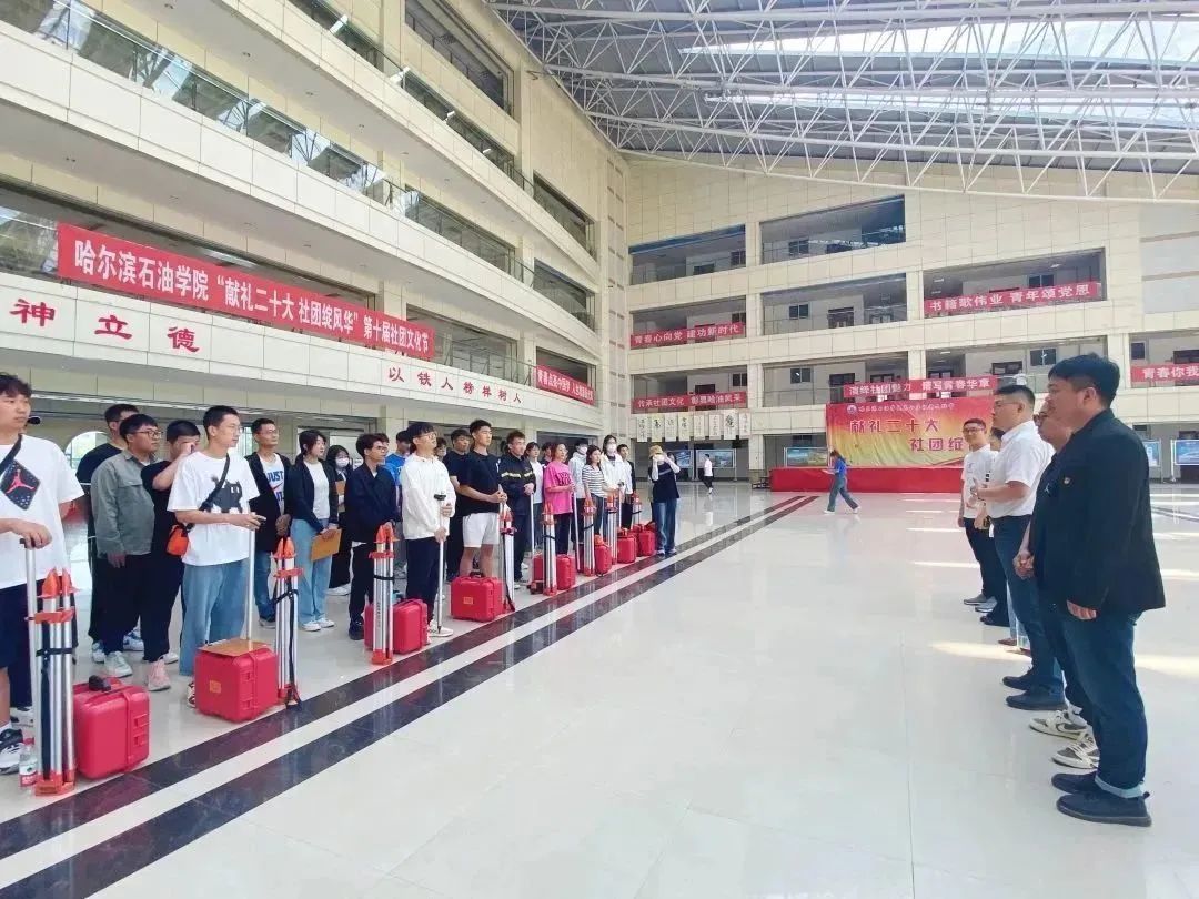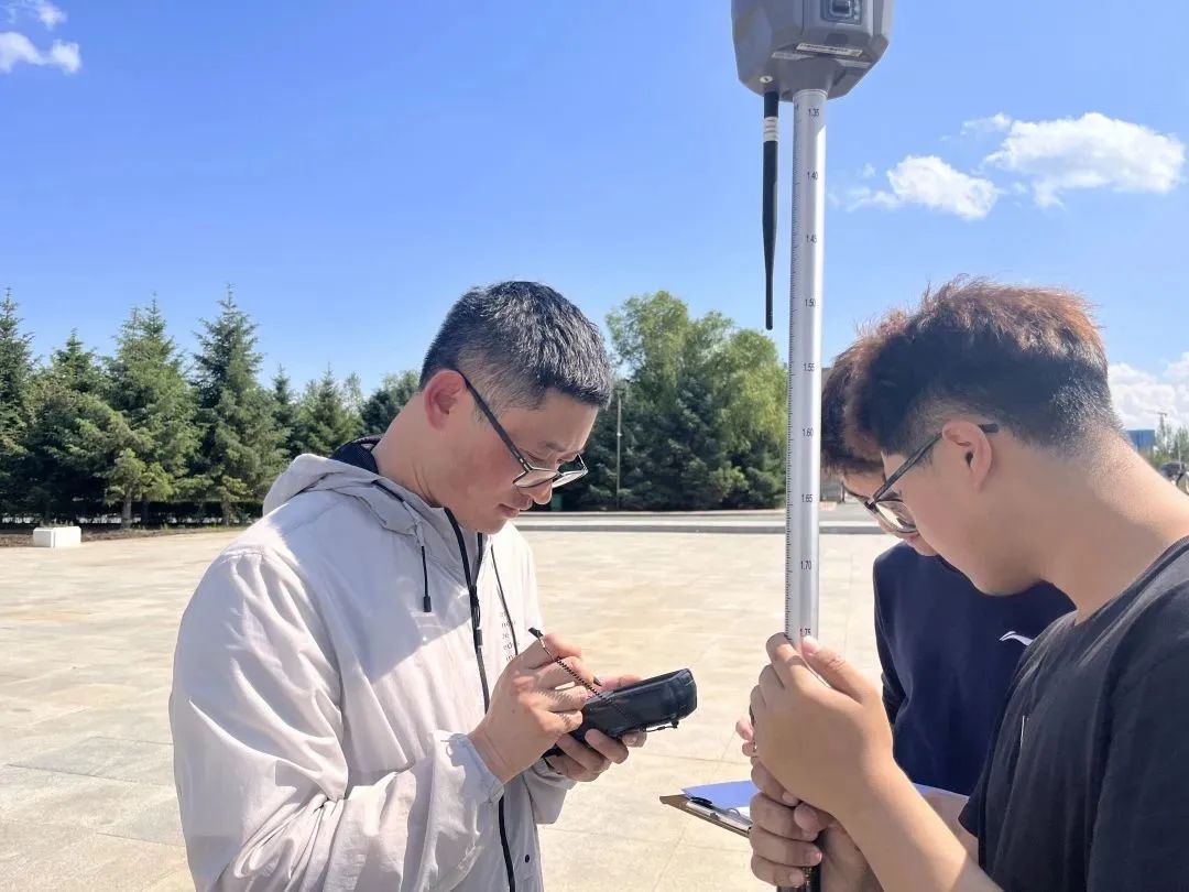 随后,贾志强老师带领所有参赛同学参观了测量比赛的场地,对于一些比赛中常见的问题也给与学生现场解答。贾志强老师强调,测量比赛既要确保数据的精确,又要动作娴熟,争分夺秒,综合考察了同学们的理论知识与实操技能。