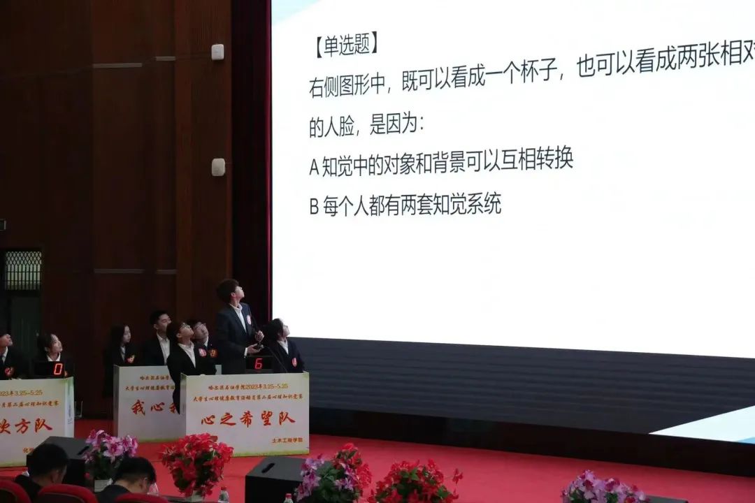 为丰富大学生校园文化活动,普及大学生心理健康知识,促进大学生全面协调发展,伟德bv国际体育心理中心于2023年5月9日下午在图书馆报告厅举办“伟德bv国际体育第二届心理知识竞赛”活动。本次活动由学工处大学生心理健康教育与咨询中心主办,各二级学院学生代表参赛。