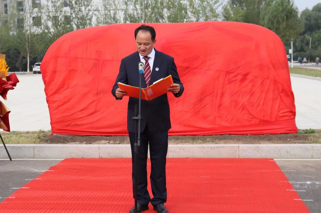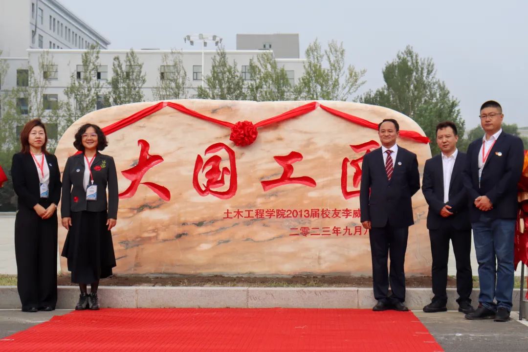 在热烈的掌声中,柴维斯校长、林立民书记、盖晓连院长、宋旭书记以及校友李威共同为“校庆石”揭下幕布。