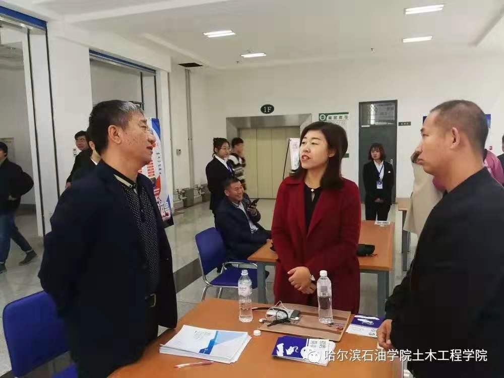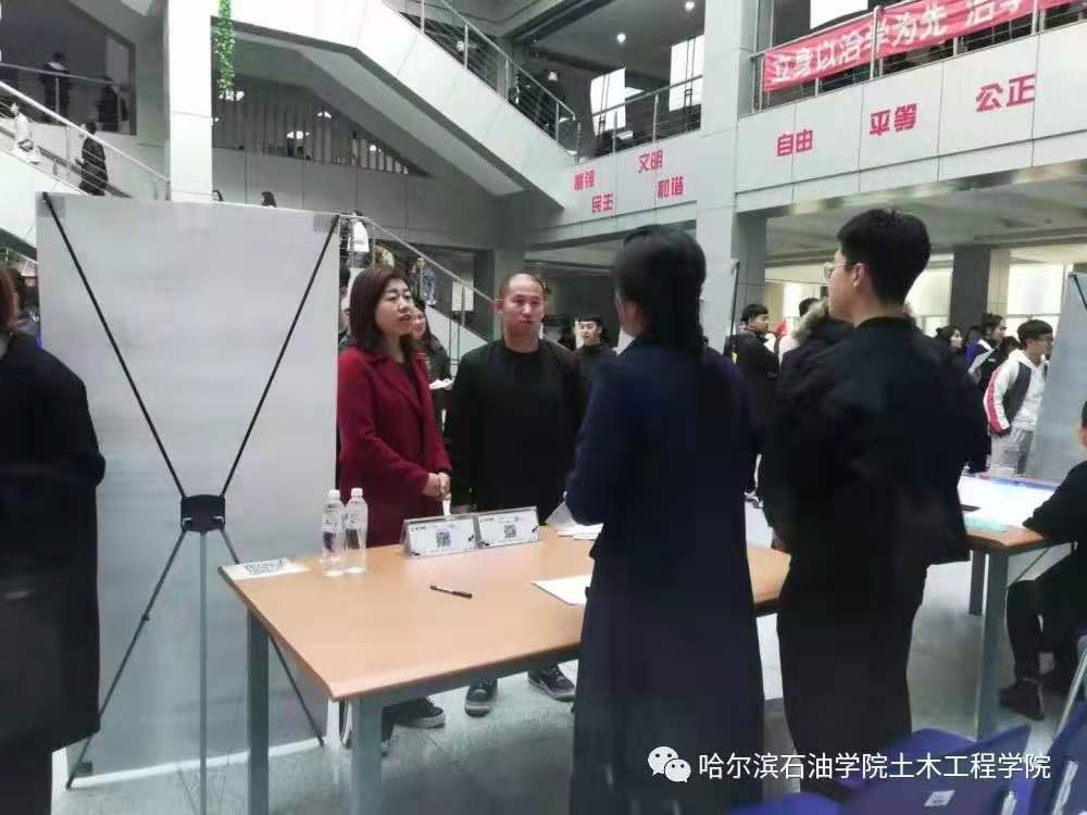 土木工程学院高度重视毕业生就业工作,院长盖晓连、副院长张佰真铭参加现场指导工作,与参会单位代表和应聘学生亲切交流,盖院长在与龙建路桥股份有限公司、建华建材集团、黑龙江省农垦建筑设计院等单位交流中了解到目前企业的人才需求、企业对学院专业人才培养的意见以及学生应聘情况。招聘会现场,毕业生手持精心准备的简历,以饱满的热情积极地与企业交流,主动了解企业情况,介绍自己的个人优势和岗位期望,递上一份份自己精心准备的简历。