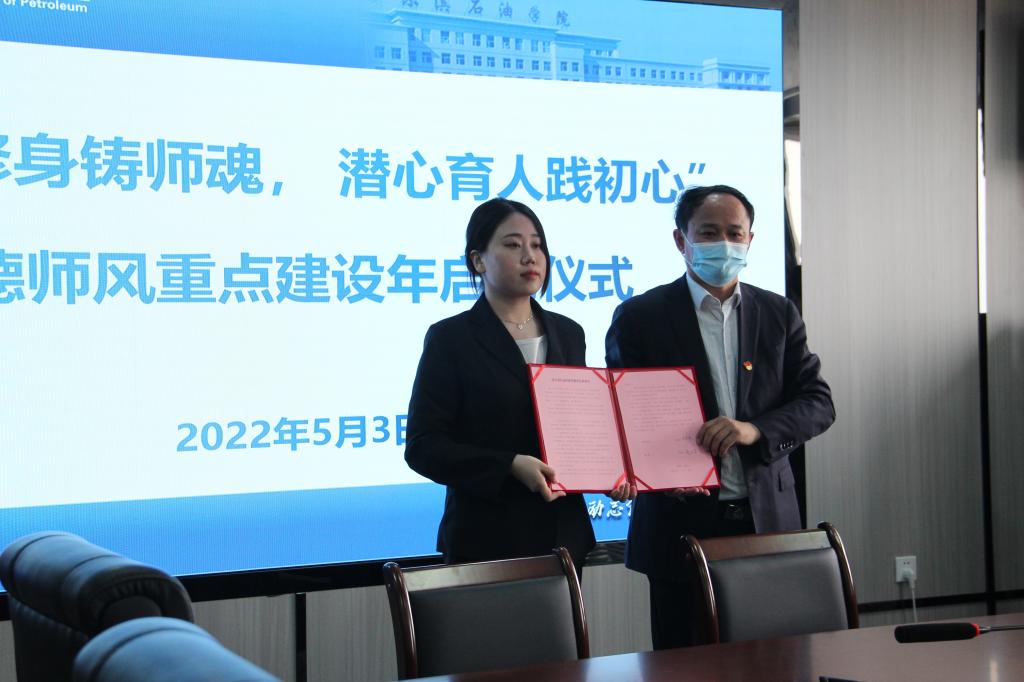 会上,校党委书记与教师代表签订《师德师风承诺书》。