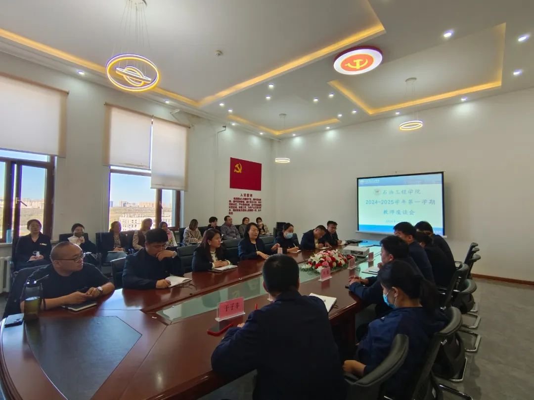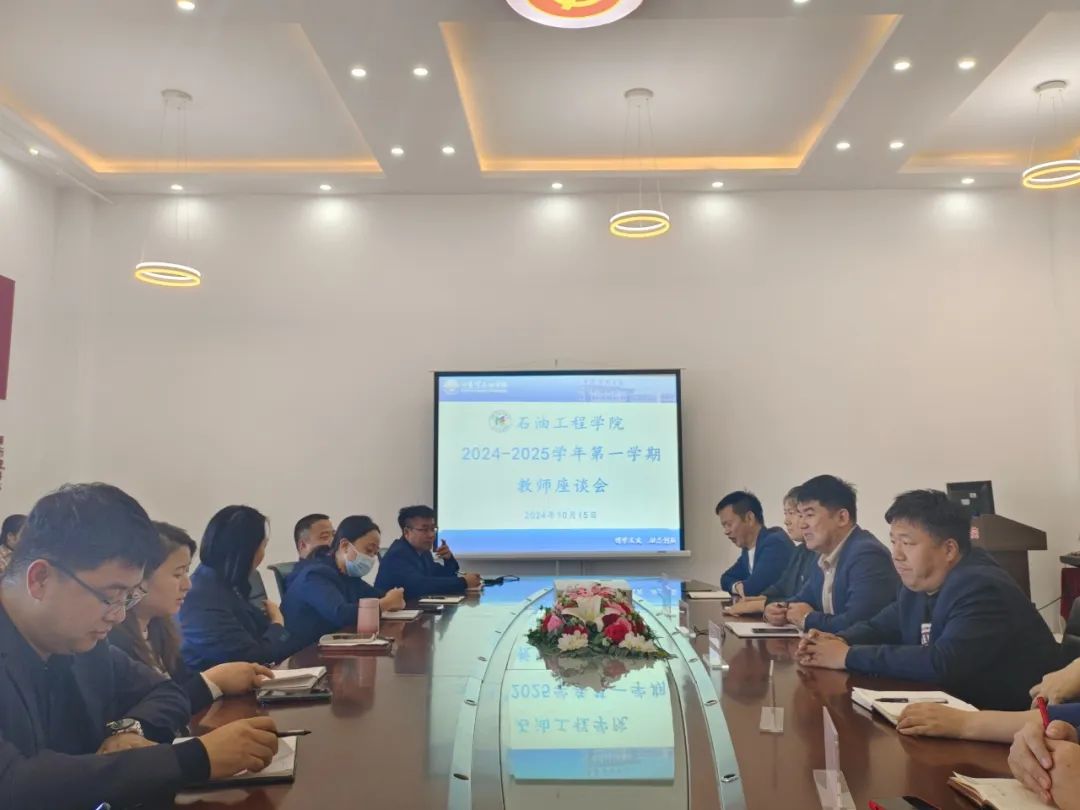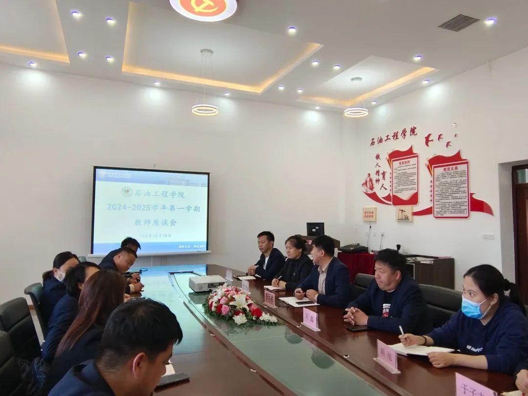 为进一步促进教师交流与合作、提升教学质量和科研水平、扎实推进学院教育教学工作,及时解决教学面临的问题。2024年10月15日下午,石油工程学院召开2024-2025学年第一学期教师座谈会,会议由学院院长李岳祥和学院副院长朱砂主持,全体教职工参加此次会议。