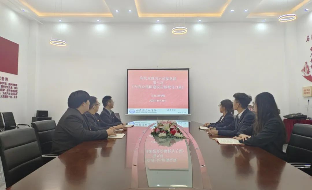 根据省委教育工委及校党委通知要求,10月18日,我院学生党支部组织学生党员观看学习2024年高校党组织示范微党课(第二阶段)第八讲《为农业强国建设贡献教育力量》。