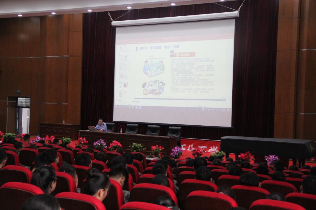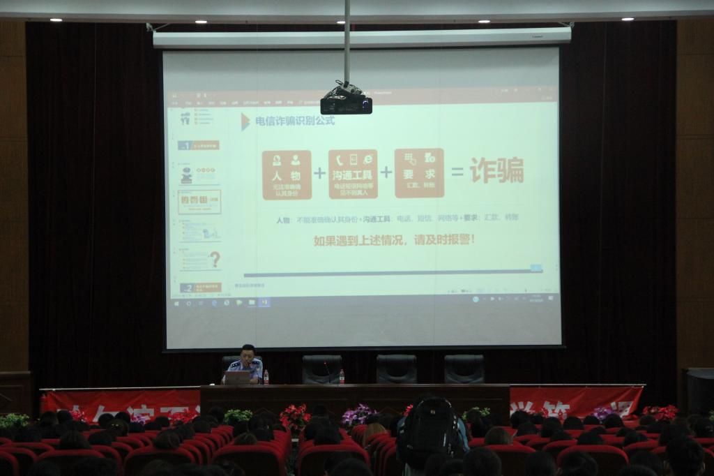 会上,首先由公安分局郝警官,结合我国当前电信诈骗情况,以漫画和案例的形式,生动形象,图文并茂地进行了介绍。告诫同学们,要学会辨别和抵制当下流行的QQ、微信、网上银行、网上购物、中奖、积分兑换等各种方法实施的电信诈骗手段。针对目前各种新型网络电信诈骗方式,郝警官提出了防骗秘籍,提醒同学们不要轻信他人,注意保护自己的身份信息,遇事多做调查验证,一旦遇到诈骗行为,立即报警。