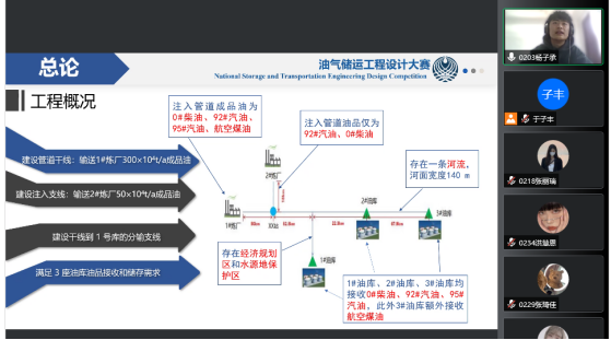 在今年的油气储运设计大赛中,各组作品的完成度都非常高,内容充实,逻辑清晰。汇报过程中,所有汇报人语言简洁,思路清晰,PPT设计合理,充分展示了小组的设计成果。