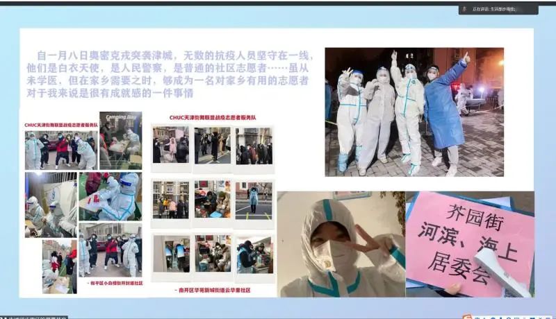 活动伊始,各位同学通过自己制作的ppt向大家分享了假期担任志愿者期间的经历,分享在抗疫一线的心得,进一步增强了同学们乐于助人,服务社会的精神。志愿服务活动是倡导团结友爱,助人为乐的社会风气,是当代社会主义的一项高尚的事业。体现了中华民族的传统美德,有利于全社会树立奉献、友爱、互助、进步的时代新风范。