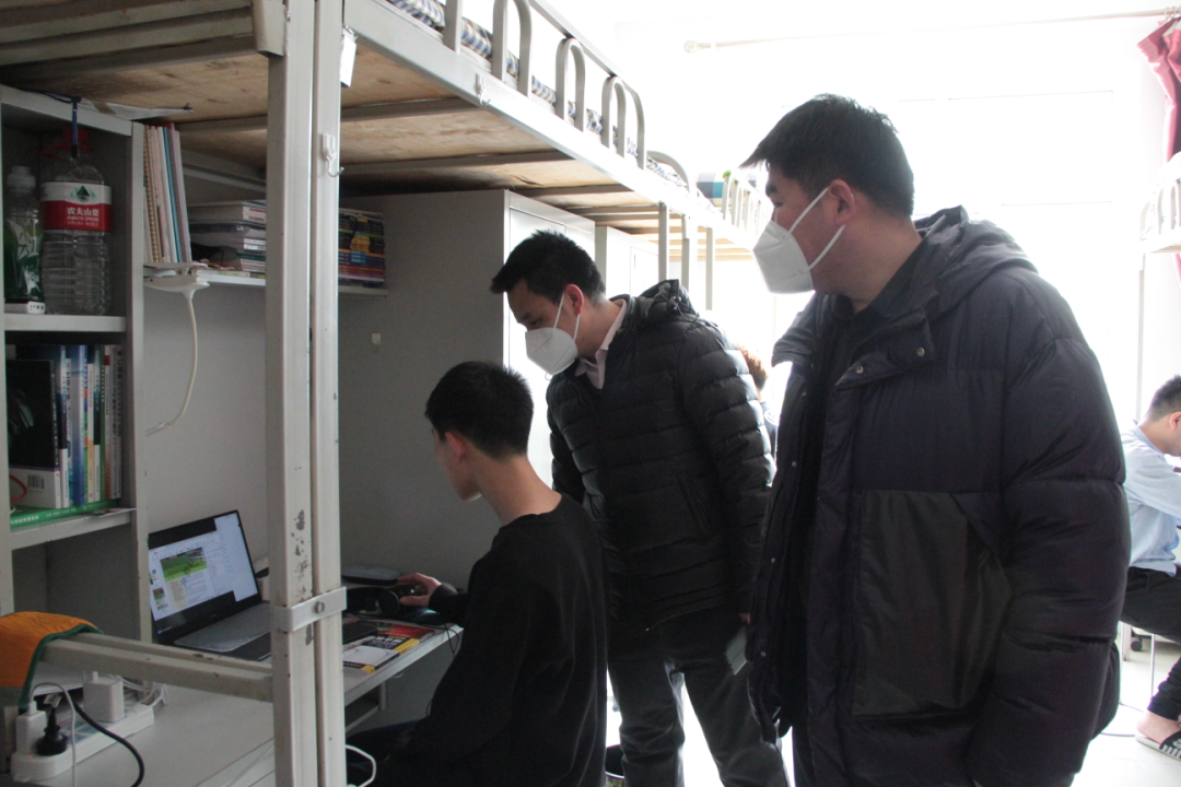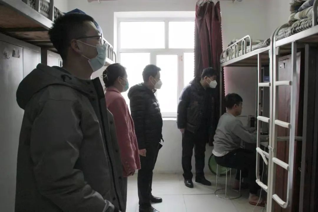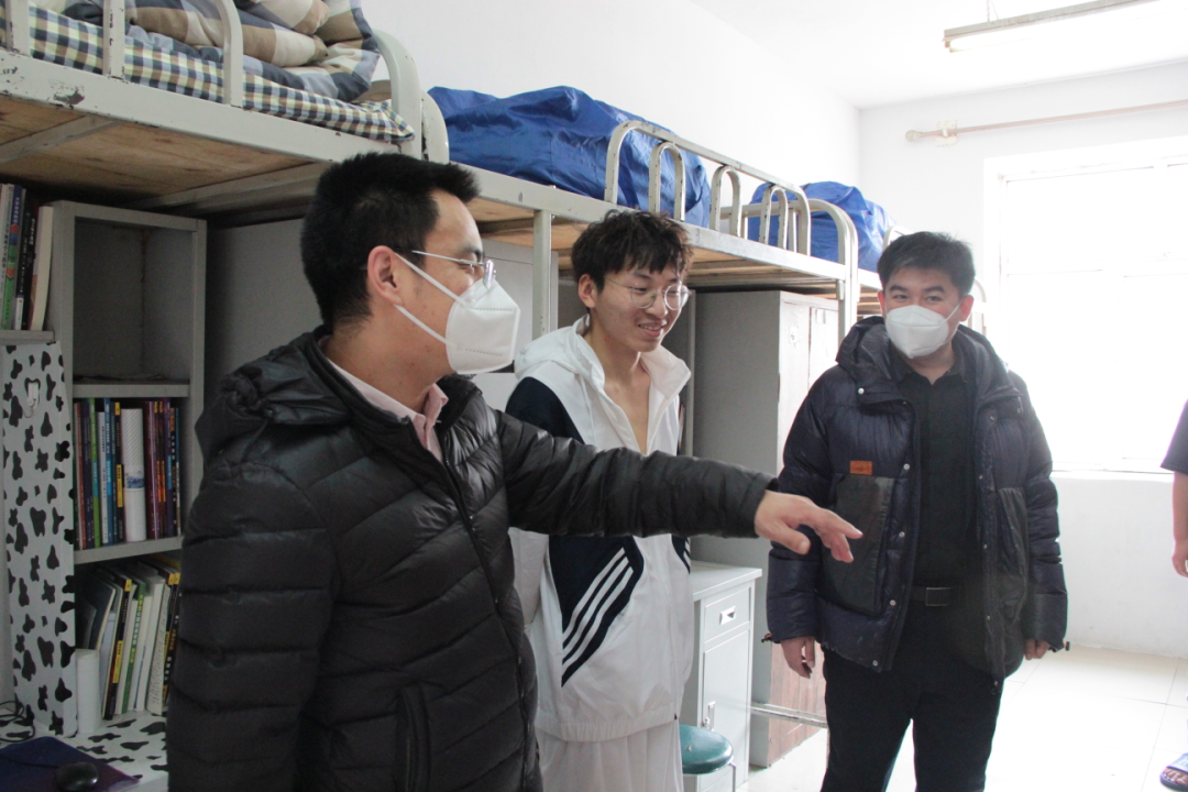 新学期,新气象、新希望。新学期伊始,为进一步了解新学期开学第一周学生线上学习、日常生活等情况,3月7日,我院院长李岳祥、党总支书记刘雁春、18级辅导员贾延迪和21级辅导员王娜,走进学生寝室检查学生线上学习情况。