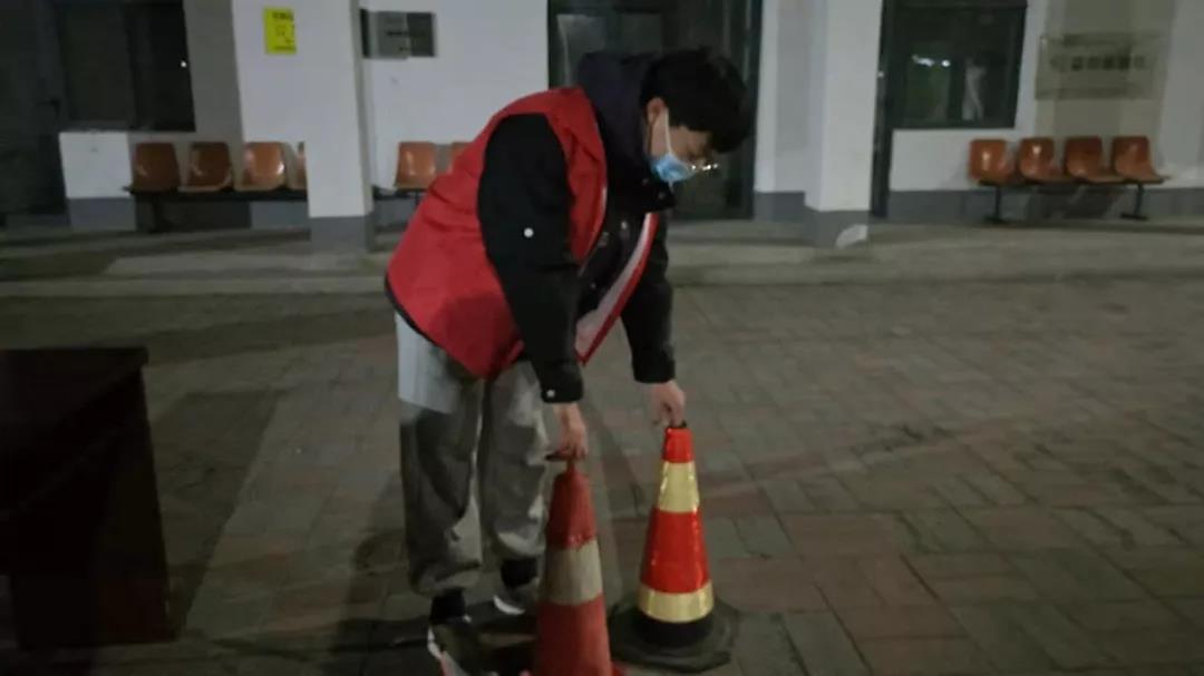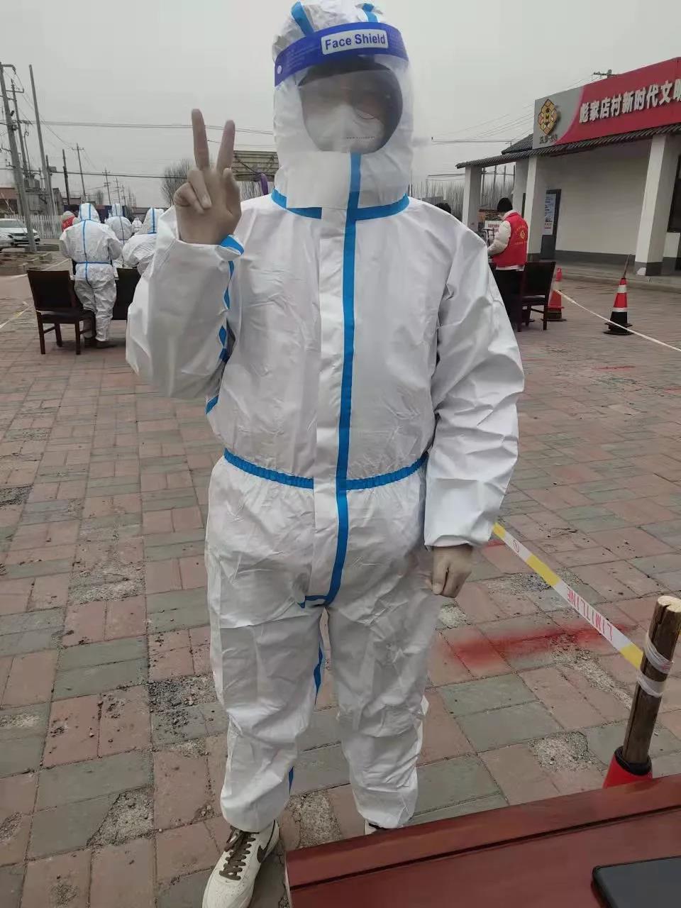 他的任务是配合村书记工作,筛查未做核酸人数,电话询问出津村民,何时出津,是否做了核酸。他认真记录,整理文件,半天时间全部排查完毕。半夜接到省里通知,要进行第二次全民核酸,志愿者紧急集合布置核酸场所,他冲在一线身穿防护服,尽管当时天气很差,但是依然恪尽职守,维持现场秩序。