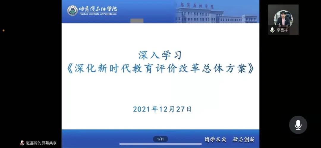 为深入学习领会习近平总书记关于深化新时代教育评价改革作出的重要指示及《深化新时代教育评价改革总体方案》,树立科学的教育发展观、人才成长观、选人用人观。树立科学的教育评价导向,提升人才培养质量,加快推进教育现代化。12月27日,我院在线上组织开展深入学习《深化新时代教育评价改革总体方案》专题培训,会议由我院院长李岳祥主持。