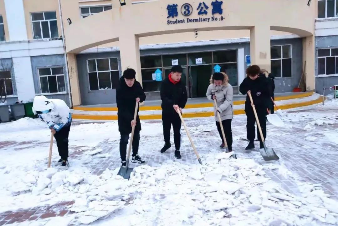 美丽的十一月,哈尔滨终于迎来了这个冬天的第二场雪,漫天飞雪阻碍了校园师生的出行,11月25日中午,我院大一新生迅速组织起来投入对校园分担区积雪的清扫工作中去。
