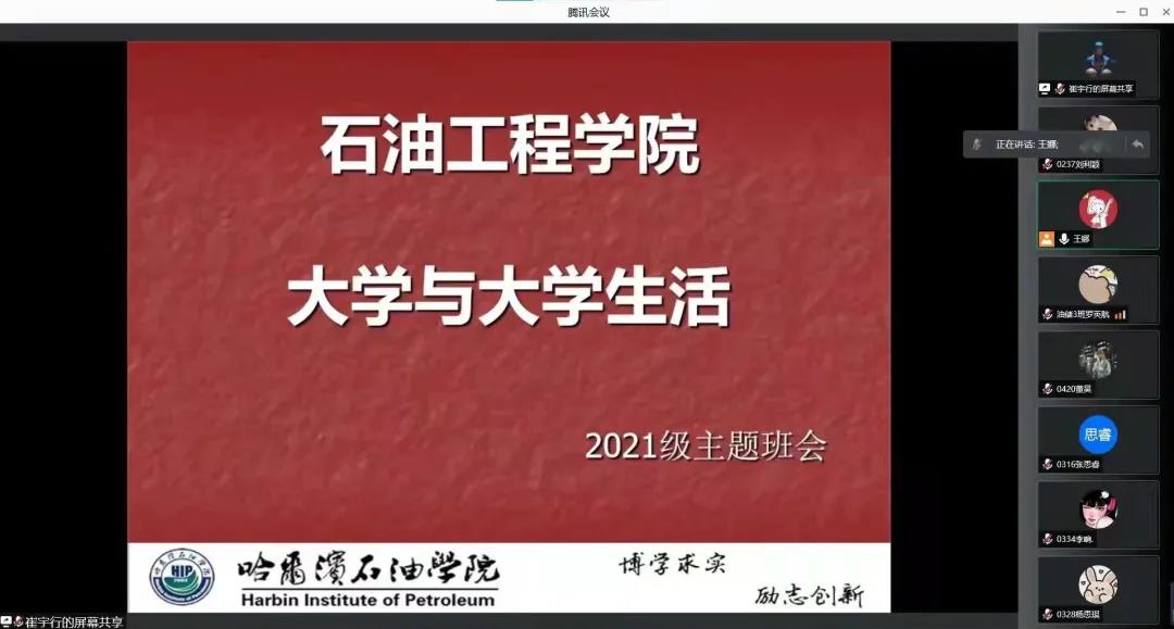 为使同学们更好的适应大学生活、明确大学规划。11月20日,我院于腾讯会议线上召开“我和我的大学”主题班会,本次会议由2021级辅导员助理王娜担任主讲人,全体2021级学生参会。