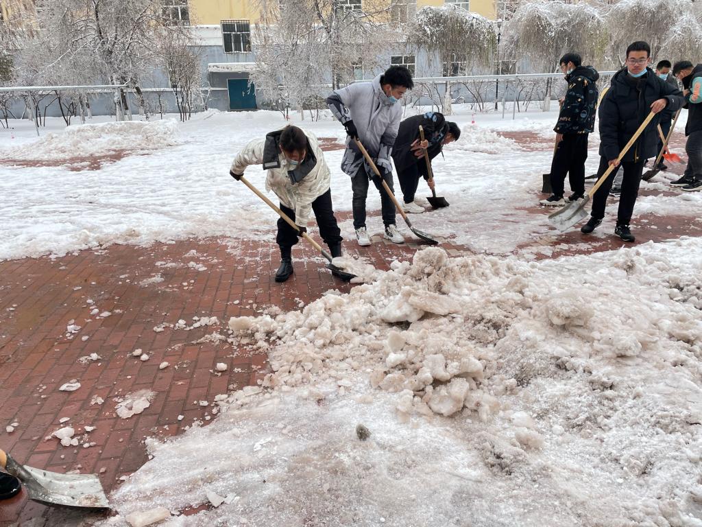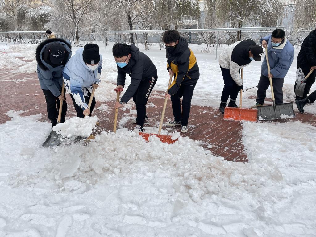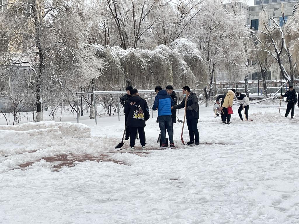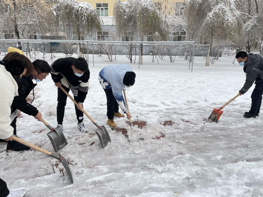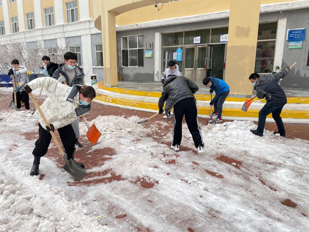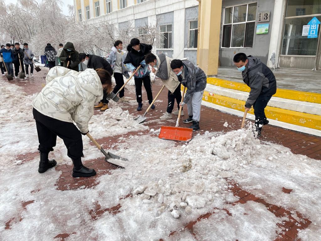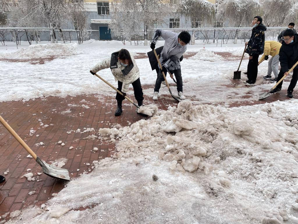 面对几十年不遇的冰冻雨雪灾害,带来诸多安全隐患,影响了师生出行安全。为方便师生出行,保障师生安全,共同抗击冰雪灾害,强化新时代劳动教育的内涵与意义。我院党总支书记刘雁春和2021级辅导员助理王娜第一时间进行战前动员,组织2021级全体学生进行清雪活动。我院学生不等不靠,克服困难,主动投入到清雪队伍中来,为赢得清雪胜利贡献力量,充分体现出了石油学子敢打硬仗的无畏精神。传播了正能量,堪称榜样。