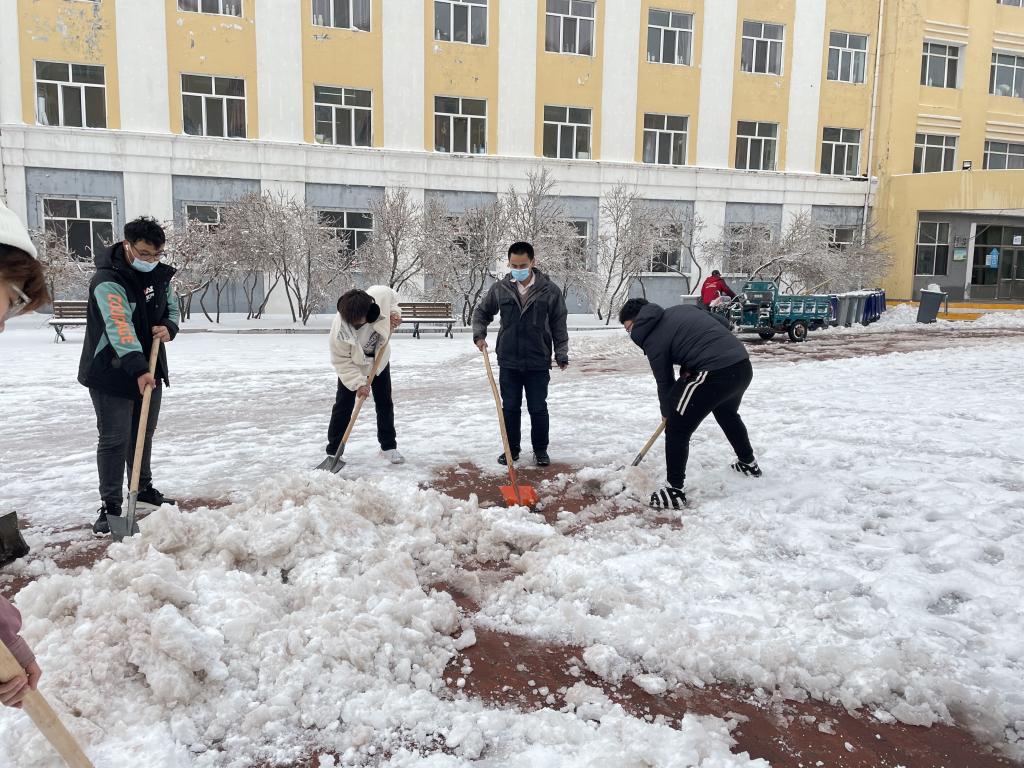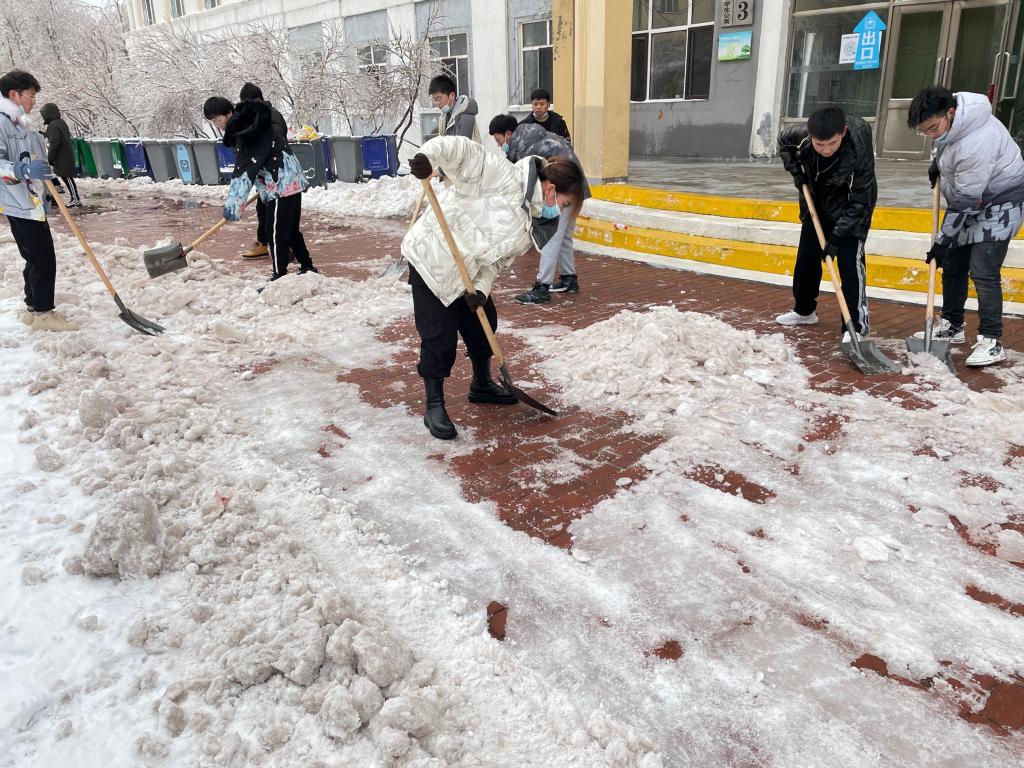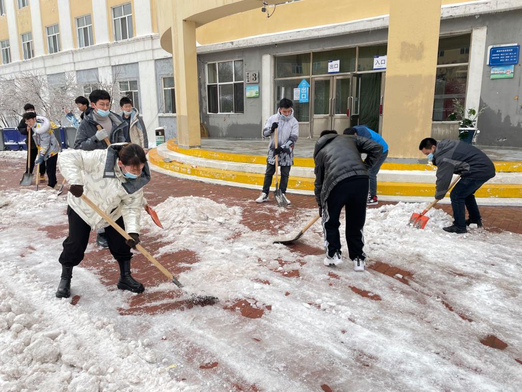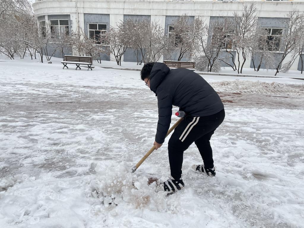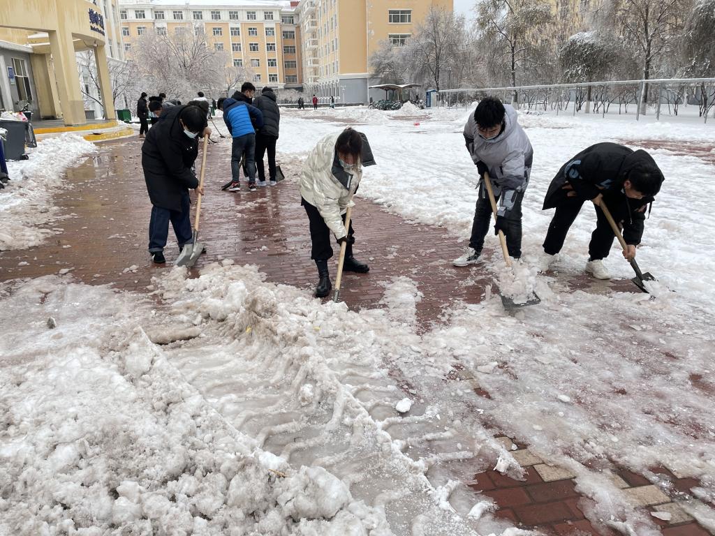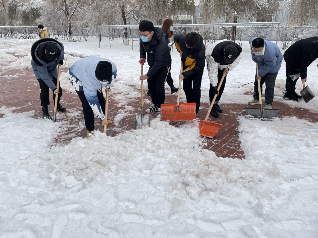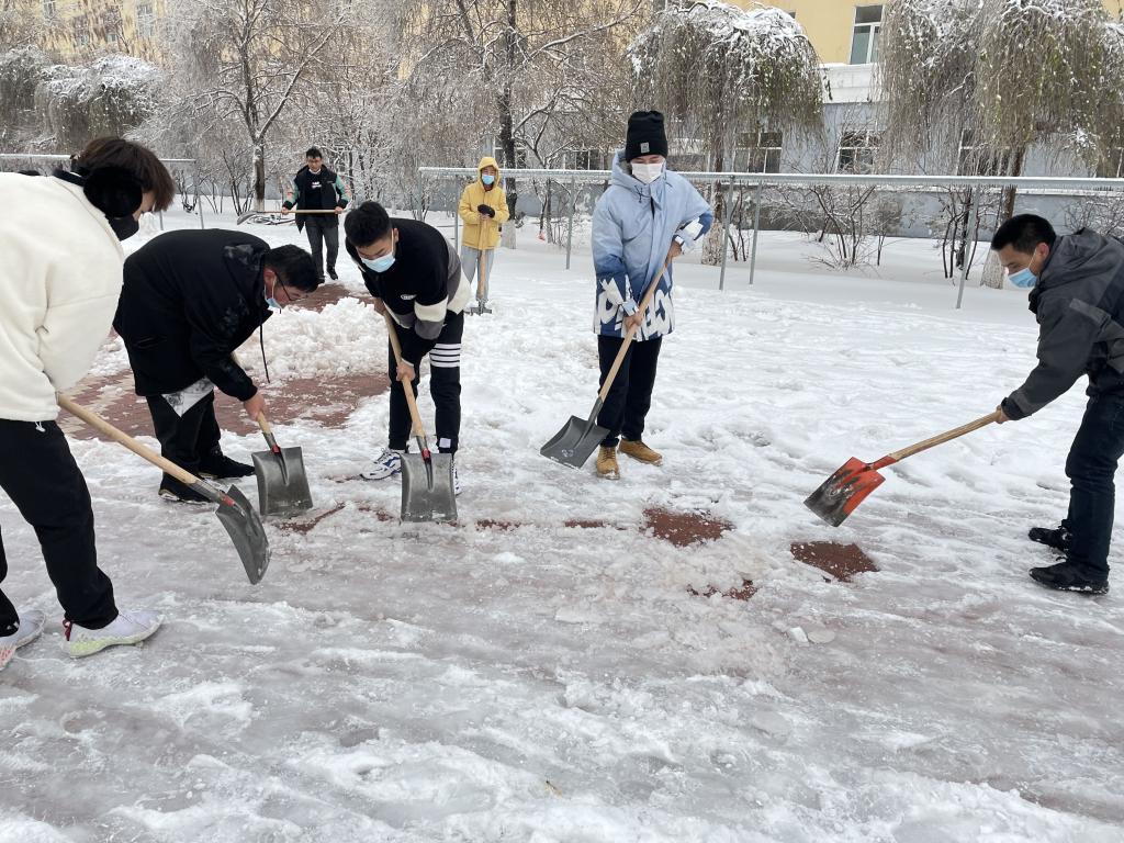 面对几十年不遇的冰冻雨雪灾害,带来诸多安全隐患,影响了师生出行安全。为方便师生出行,保障师生安全,共同抗击冰雪灾害,强化新时代劳动教育的内涵与意义。我院党总支书记刘雁春和2021级辅导员助理王娜第一时间进行战前动员,组织2021级全体学生进行清雪活动。我院学生不等不靠,克服困难,主动投入到清雪队伍中来,为赢得清雪胜利贡献力量,充分体现出了石油学子敢打硬仗的无畏精神。传播了正能量,堪称榜样。