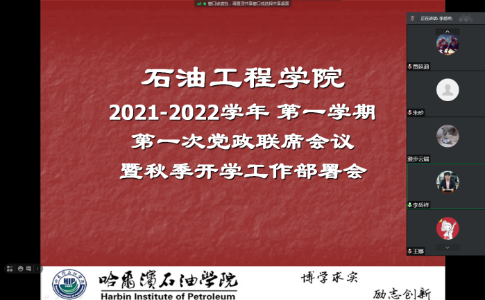 随后,副院长李岳祥传达了学校近期下发的几个工作文件,与会人员全员学习了《致全校师生员工的倡议书》、《关于进一步加强疫情防控工作及2021年秋季学期开学工作预案》﹝哈油疫领发【2021】10 号﹞、《伟德bv国际体育2021年秋季学期线上教学工作预案》﹝哈油疫领发【2021】11 号﹞文件,对开学前学院的各项工作进行了落实,对线上教学的有关内容进行了要求和安排。