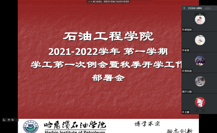 与会人员在刘书记的带领下,根据《关于进一步加强疫情防控工作及 2021年秋季学期开学工作预案》﹝哈油疫领发[2021]10号﹞、《伟德bv国际体育2021年秋季学期线上教学工作预案》﹝哈油疫领发[2021]11号﹞文件进行了工作研讨。会议明确强调了辅导员要切实做好钉钉健康填报以及学生本人 “龙江健康码”“大数据行程码”绿码,做到无遗漏排查分析和研判。认真严格落实好学生因病缺课登记追踪和学生在线上教学的台账的记录等工作。全力做好学生管理的相关工作,还要重点加强对2018级学生“3+1”校企综合实习的追踪情况,直至学生返校前后的各项要求,确保学生顺利返校开学。