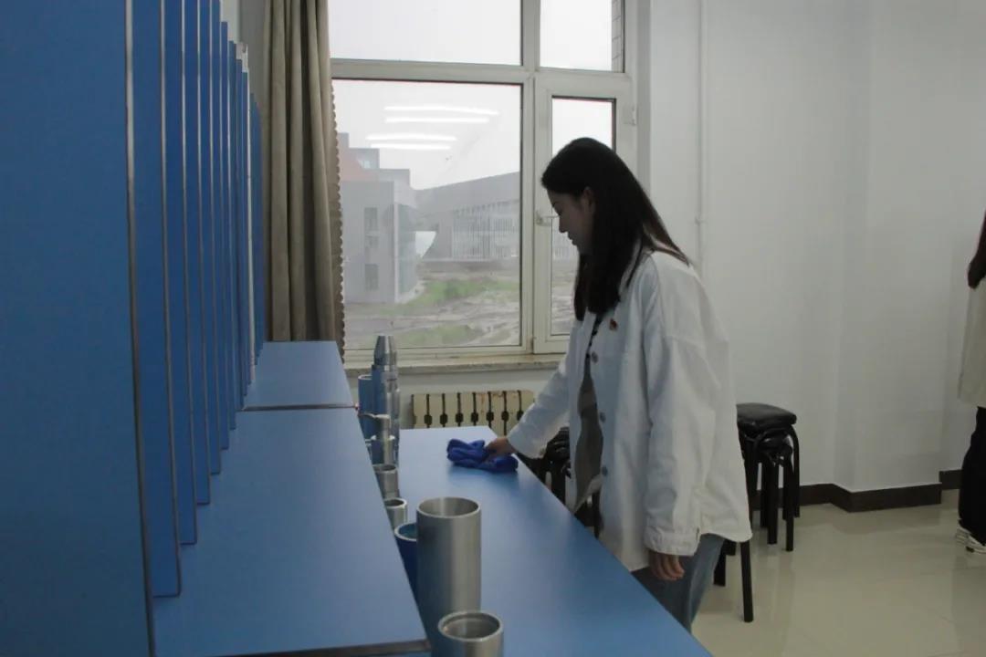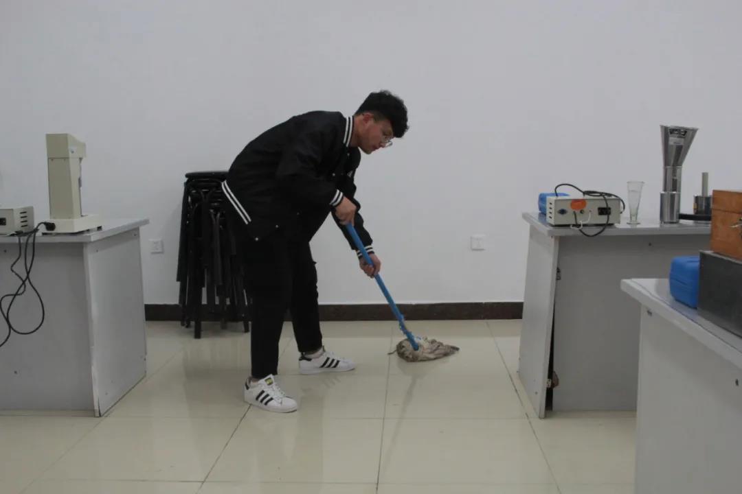 活动伊始,实验室主任刘鑫老师带领大家对实验室内设施设备、器皿容器,实验室外消防、水电,以及规章制度等情况作了仔细检查。随后,同学们按要求清扫实验室卫生环境,分工明确,通力合作。将各种仪器设备摆放在合适的位置,统一有序。认真擦拭,保证不留卫生死角,尤其是针对贵重仪器设备,更加仔细小心地擦拭与保养,给了实验室一个整洁、崭新的容貌,营造了良好的学习环境。