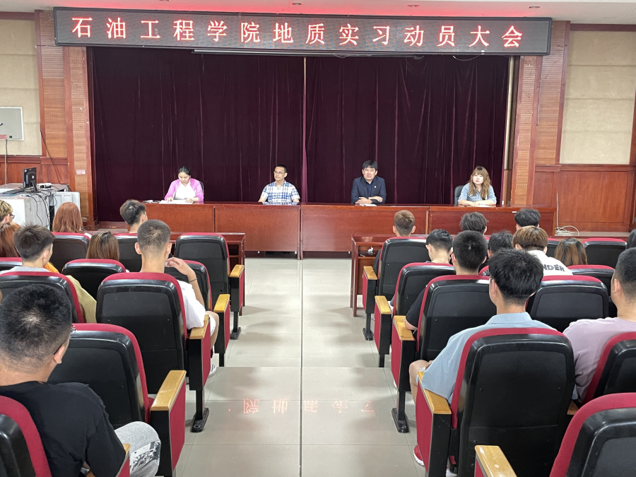 2021年6月21日,我院在主教学楼518教室举行地质实习动员大会,石油工程学院党总支书记刘雁春、石油工程学院副院长李岳祥、2019级辅导员郭海明、地质实习指导教师代表胡旭老师,以及2019级石油工程专业全体同学参加本次动员大会。