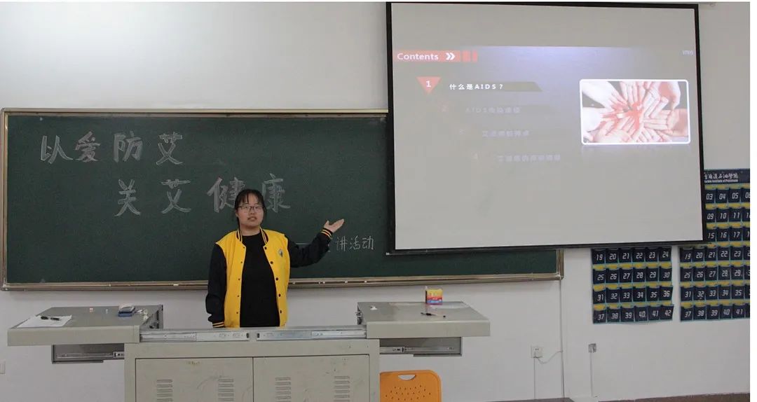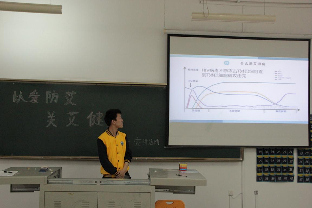 宣讲过程中,宣讲人首先对艾滋病的现状作了说明并向大家讲述了预防艾滋病的必要性,随后介绍了艾滋病的传播途径,帮助大家了解艾滋病相关知识,介绍预防艾滋病的策略及措施,同时也科普了艾滋病的临床表现、污染源等。使得同学们切实的了解到艾滋病的危害、防控的方法和意义。