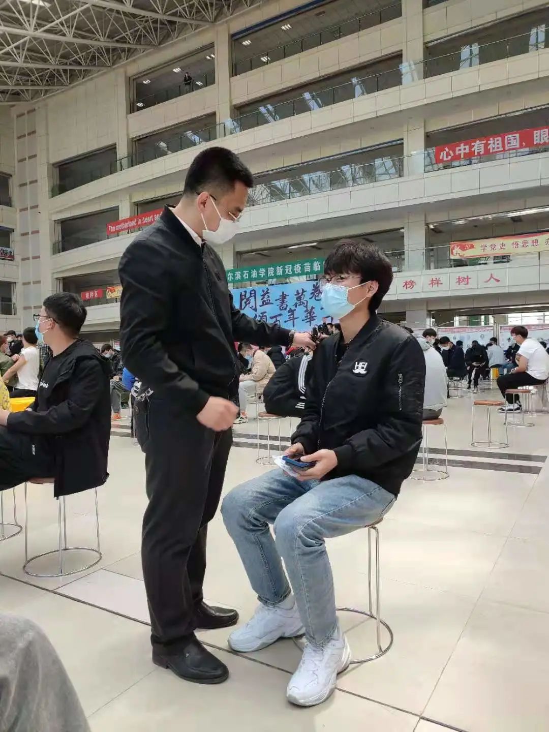 石油工程学院党总支结合“学党史、办实事”主题教育活动,积极发挥基层党组织与党员的先锋带头作用,除了采取志愿服务的方式,还通过现场调动党员和积极分子带头接种,集中开展点对点服务相结合的办法,最大程度满足师生接种服务需求。