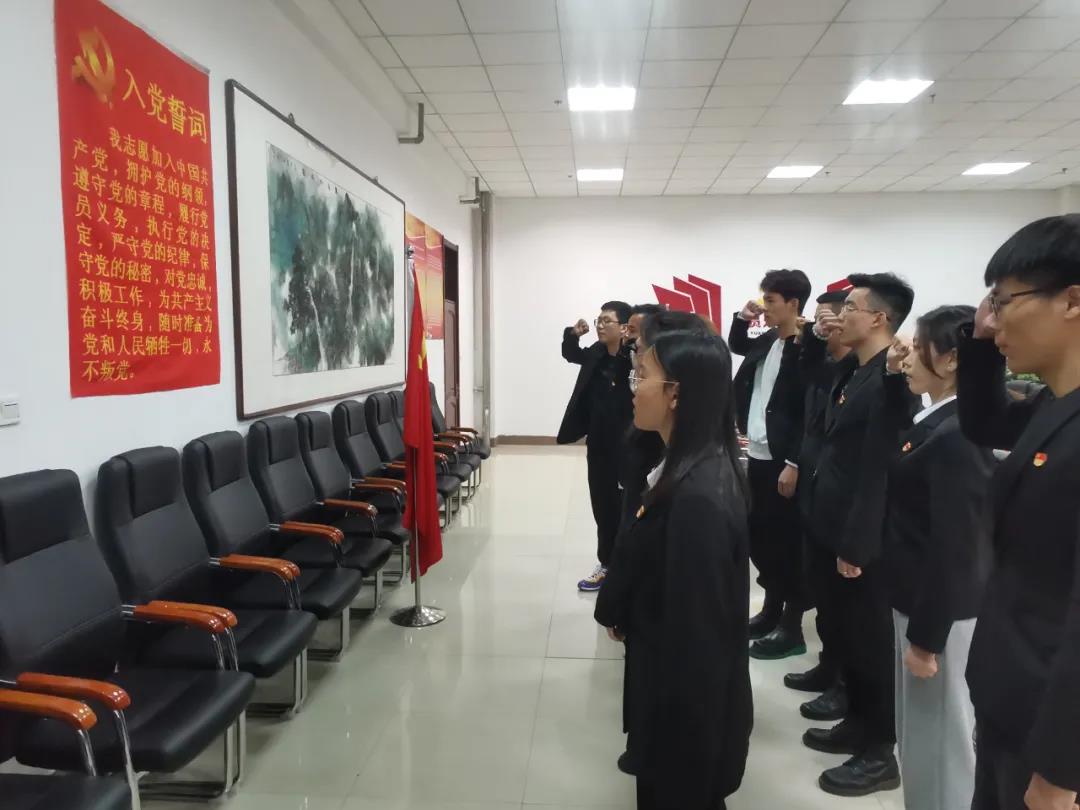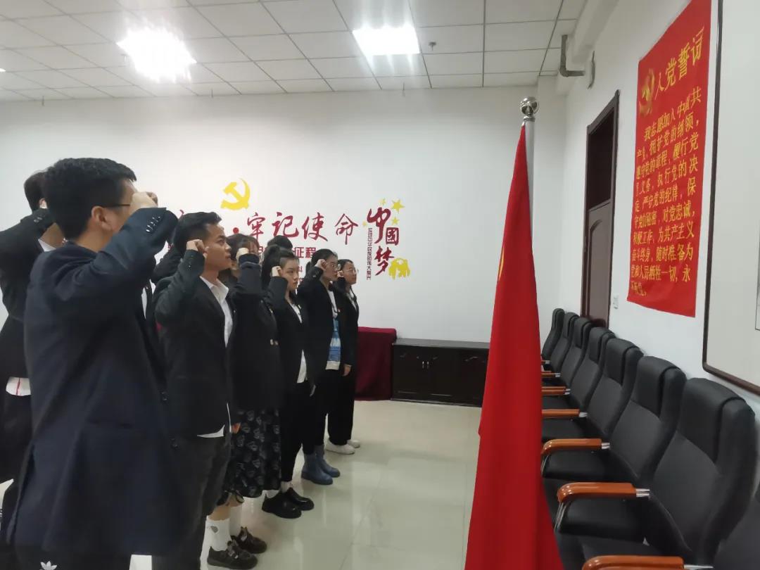 各位发展对象的入党介绍人肯定了10位发展对象在发展期内的表现,能够积极参加党组织的各项活动,学习上刻苦努力,工作上积极主动。经支部大会讨论,认为胡美玲等10名发展对象符合共产党员标准,经支部大会无记名投票表决,胡美玲等10名发展对象赞成人数均超过应到会有表决权的正式党员的半数,同意接收他们为预备党员。10位发展对象表示:感谢党组织的信任与栽培,将在今后的学习生活中牢记党员身份,继续努力,为党和人民奉献一切。随后,老党员为新党员佩戴了党徽。10名新发展的党员面向党旗郑重宣誓。