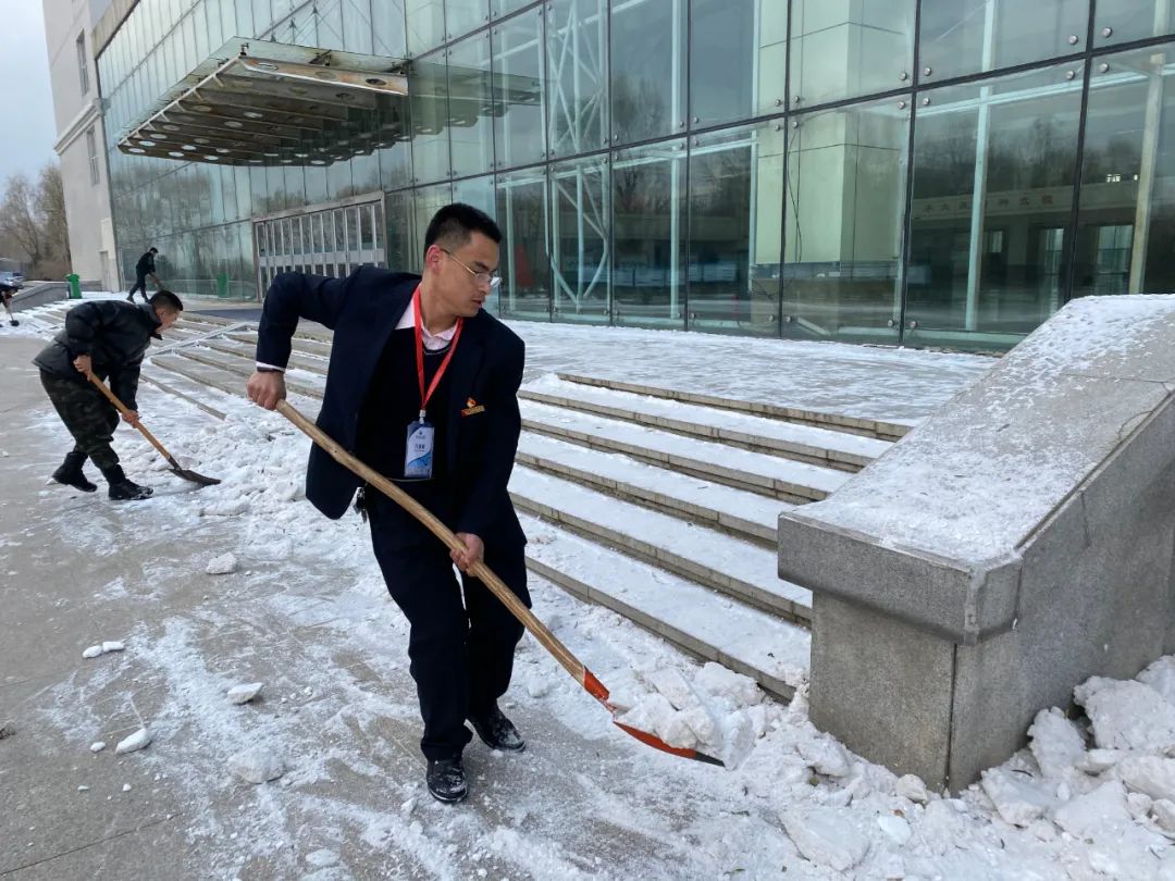 为确保师生的出行安全,11月9日上午9时,党总支书记刘雁春和辅导员贾延迪老师带领部分学生党员及入党积极分子开展义务清冰雪志愿服务,对主教后门前的冰雪进行清扫。