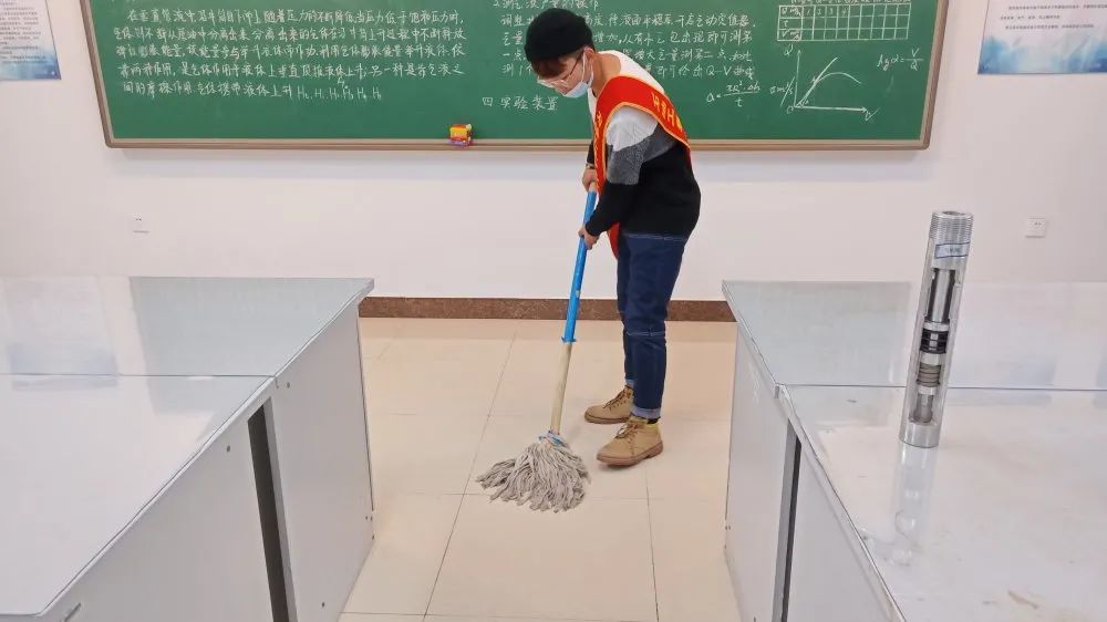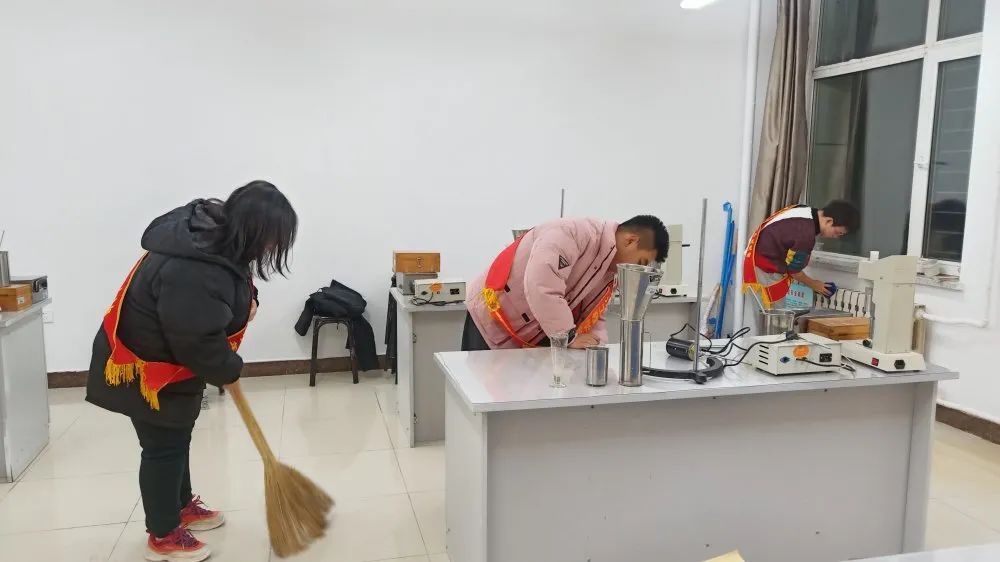 为营造良好的校园环境,11月5日18:00,我院组织学生干部对第二实验楼内11间实验室进行彻底整理与打扫。活动中,学生干部分工明确,通力合作。大家合力将各种仪器设备摆放在合适的位置,统一有序。认真的铲除地面油漆、擦拭台面,保证不留卫生死角,尤其是针对贵重仪器设备,更加仔细小心地擦拭与保养,给了实验室一个整洁、崭新的容貌。