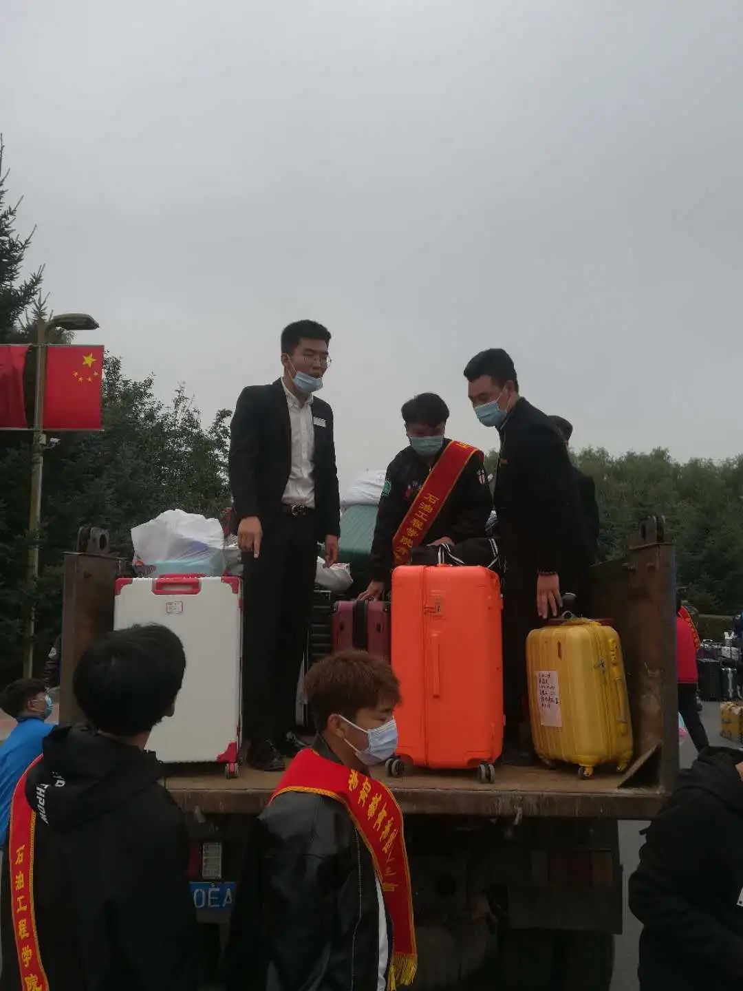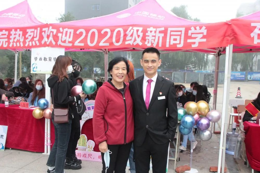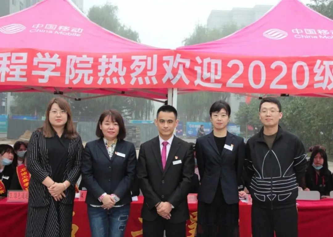 石油工程学院龙院长迎接第一位报道新生