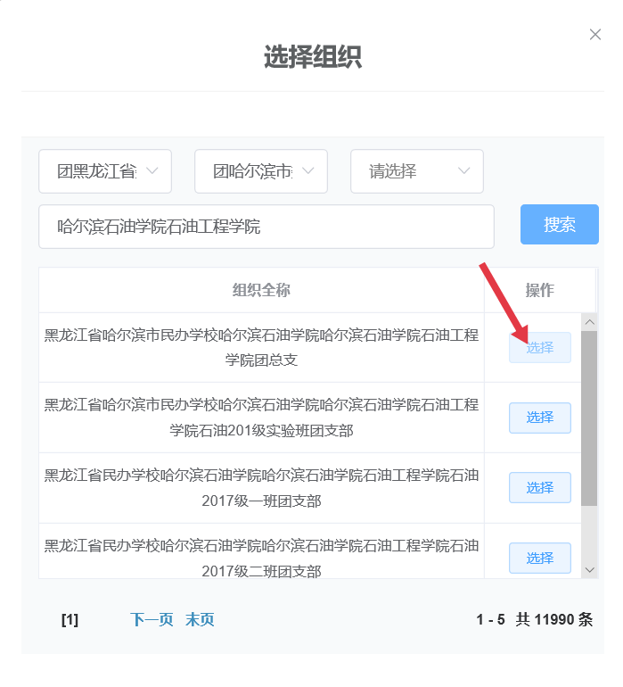 其中,转入组织是否属于北京/广东建一栏填“否”,转接原因选择“升学”。申请转入组织选项选择团黑龙江省委-团哈尔滨市委,搜索“伟德bv国际体育石油工程学院”(组织全称:黑龙江省哈尔滨市民办学校伟德bv国际体育伟德bv国际体育石油工程学院团总支),具体选项如下图所示:
